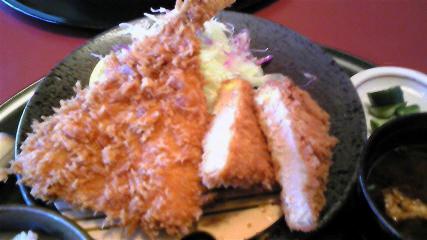 楽市楽座日進店のとんかつやさん で、ランチ でかい アツアツの ふっくらしたアジ 肉厚マグロカツ 手作りタルタルソース しゃきしゃきのキャベツ それもキャベツ ご飯 赤だしお代わりOK でかいアジフライ うまうま 満足~