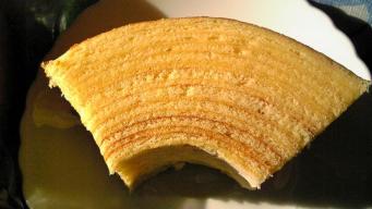 先日 エースベーカリーのアウトレットで、ゲットした 手焼きバージョン 手焼きらしく 層もまだら もった感じやわらかい やわらか 先回の機械で、均等焼きのバームほうが この生地には向いている。 やわらかさを求めて 口に入れるとべっとり きっとアウトレットなので これは焼きが失敗か?油脂も多い気がする 父ちゃん 熱も下がり 朝は微熱が 現在 36.3℃で、 安定 食べてもはかなくなり 食欲も出てきたバームクーヘンも食べたぞ 明日から 仕事だ ふぁいと~ とうちゃん