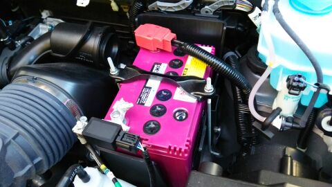 今日 部品取り付けにボンネットあけたら バッテリーがピンク色(^o^)vピンク色のバッテリーが、あるとは 初めて知りました。 ここの車屋さん どうしたら お客様が、喜ぶか よく考えている 黒一色のエンジンルームが、華やかに~♪