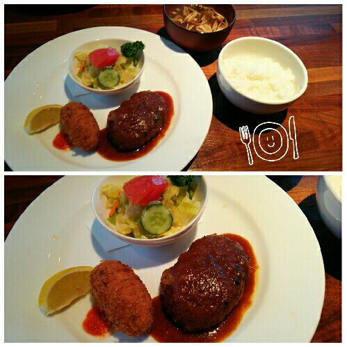 手作りハンバーグとカニクリームコロッケのキッチンカフェいつも 一本向こう側の道路ばかり通るので ここにランチスポットが、あるとは 知らなかった~ ランパスのおかげで 一軒開拓~ランチパスポート用メニュー ハンバーグ うまうま 自分が作るのと似ている クリームコロッケは、かにの味が濃くて 連れのコロッケは チョイ 焦げて爆発していた 再度来訪して ランチを食べようと