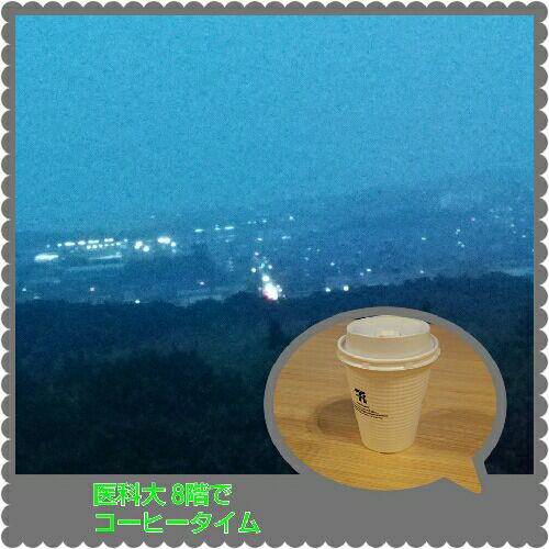 今日は じしの目の処置に医科大でレーザー 待ち時間に 院内のコンビニでコーヒーかい 景色のよい 8かいでこーひーのんで まつ 景色はいいなあ