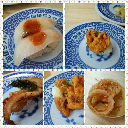 くら寿司 ウニが 結構美味しいかったのは驚き🎵💮 😋✌ 一番左上はボラ 限定品 これもうまうま ウニとぶり