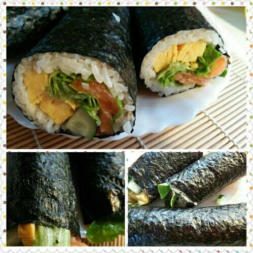 恵方巻~ というか サーモンと卵で、 さらだまき~