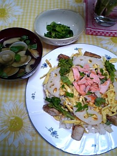 国産ハマグリ で、お吸い物 しいたけ ちくわ 三つ葉入り