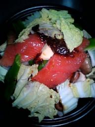 夜 鮭 味噌ちゃんちゃん焼き タジン鍋(キャベツ 人参 玉ねぎ ピーマン 舞茸 エリンギ しいたけ 白菜) 粒コン入り16穀ごはん