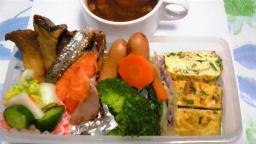 糖質0%フランク エリンギの照り焼きステーキ 塩鮭 ネギだし巻き もやしとほうれん草人参ナムル風おひたし ブロッコリー あさ漬け 味噌汁 ごはん
