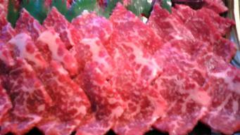 最初は、生で 刺身状態で、ちょっとだけいただき 肉本来の味をみて 焼いて食べる。