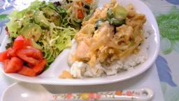 ささ身の親子丼 アボガトわさびドレッシングサラダ