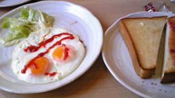 基本のドリンク代 に 目玉焼き 2個玉 トースト2個 サラダ ドリンクの飲み放題は、お得 トーストを ご飯