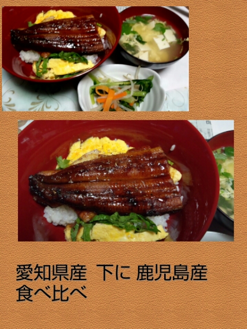 うなぎ 上に 愛知県産 下に鹿児島産と ダブルで、のっけました^-^