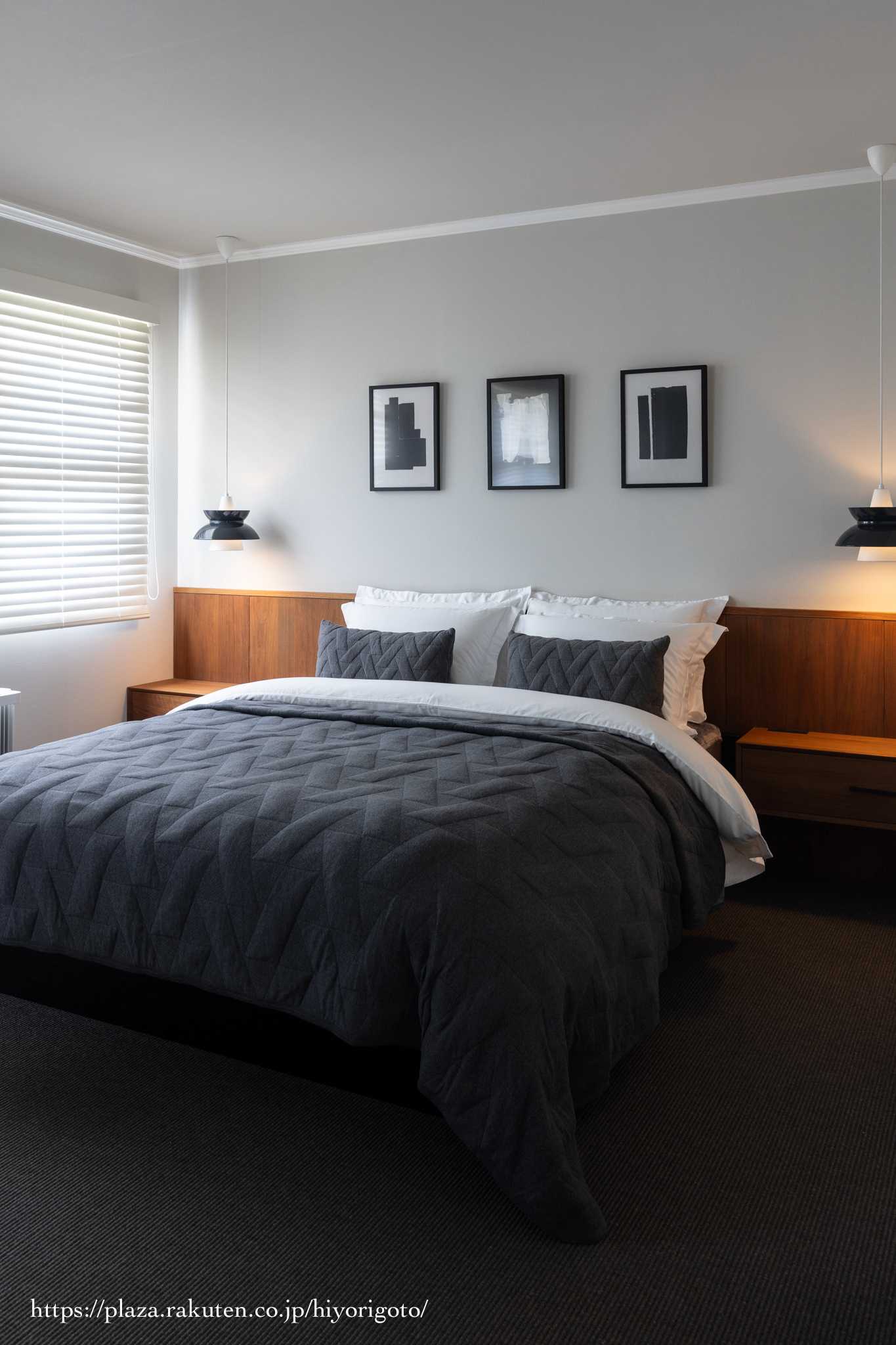 ちなみにベッドの羽毛枕とクッションは飾りです。