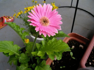 今日は、子育てのお話ではないのですが。 ここへ越してきた春に購入したガーベラ。今年も元気に咲いてくれました ちょっと株が大きくなってきたのか、窮屈そう。 今年は植え替えかな~ そして一昨日、近所にできた新築の家の見学に行ってきたのですが、その時にお花を頂きました 黄色くて可愛かったので、ひよりと一緒に選んだのですが、お名前がわからない・・・(^^;) どなたか、教えてくださ~い人気blogランキング←応援宜しくお願いします。これからも頑張ります(^0^)