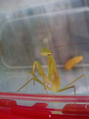 先日、実家に帰っていたときのこと。せっかくだから虫とりに行くことになりました。二人共はじめての経験。ところがなかなかみつからなくって、A-COOPでジュースを買ってベンチに行くと、カマキリ発見!ちょうど食事中だったらしいカマキリのくわえていたのはバッタ。どっちも捕まえたのですが、ここでひよりの一言が「バッタさん、お顔がないからごはん食べられないね~」確かに( ̄□ ̄;)!!でもその前にカマキリにやられてるんたけどね~(^。^;)