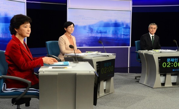 産経・加藤前支局長を起訴の件といい、元側近、弟の人事介入、世界日報の起訴、そして従北ということで政党の解散まで行ってしまう。完全な独裁ですね。。。ハンギョレ以外は、元側近、弟の人事介入の件は、ずっとたたいていましたが、もう話題にもあがらなくなりましたね。言論の自由、報道の自由、結社の自由すべてが失われている独裁政権下の韓国。。。まあ、いままでもそうだったのでしょうけどね。。。[社説]まるで朴大統領の“政治報復”ではないか2012年12月10日、ソウル汝矣島のKBSで開かれた第18代大統領選挙候補者テレビ討論会で、朴槿恵当時セヌリ党大統領候補、李正姫統合進歩党大統領候補、文在寅民主統合党大統領候補が討論会の開始を待っている。 国会写真記者団//ハンギョレ新聞社 統合進歩党解散は朴槿恵(パク・クネ)大統領の“作品”だ。悲劇的ドラマを実行したのは憲法裁判所であるが、これを総監督して演出したのはまさに朴大統領である。就任以後特別な業績もなかった彼女が大統領当選2周年に合わせてあげた“最大の業績”はまさに進歩党解散という「民主主義の一大後退」であった。 朴大統領は憲法裁判所の決定について「自由民主主義を確固として守った歴史的決定」と評価した。「自由民主主義」という用語についての学問的な議論はさておいても今回の決定にはいかなる「自由」も「民主主義」も見出せない。むしろ個人の自由と権利は侵害され、表現と結社の自由は無惨にくじかれ、国民の選択権に基づいた代議民主主義は徹底的に否定されてしまった。朴大統領は自分の作品を自賛したいのならいっそ「反共民主主義の勝利」という言葉に変えたほうがましだ。 実際、朴大統領が進歩党の解散を後押しした目的はもともと民主主義の保護や憲法的価値を守ることとはかけ離れていた。進歩党が我々韓国社会の大きな脅威にはなれないことはよく世間に知られていることだ。それでなくても下降するばかりの進歩党は、いわゆる「イ・ソクキ内乱陰謀事件」ですでに政治的に臨終を告げられた状態である。それなのに朴大統領があえて進歩党を空中分解させるという剣を抜いた理由は何だろうか。それは進歩党に対する個人的な嫌悪感と政治報復の一念以外には理解できない。思い返される大統領選の討論会 今回の憲法裁判所の決定によって多くの人が2012年12月4日の大統領候補テレビ討論会を思い出したろう。「朴候補を落とすために出てきた」と公言し、朴大統領を辛らつに攻撃したイ・ジョンヒ進歩党候補、そして彼女をにらみつけた朴大統領の怒りに充ちた目つきが思い起こされる。朴大統領はちょうど国家情報院が暴いたイ・ソクキ事件に乗じて法務部を動員して政党解散審判請求を強行した。与党寄りの保守派ばかりの憲法裁判所は当然自分の意に従うという確信があったのだろう。憲法裁判所はその期待を裏切らなかった。 「チンド犬は一度噛み付いたら肉を完全に食いちぎるまで放さない」という本人の弁のように、朴大統領は自分の気分を害した者を最後までかみちぎって息の根を止める恐ろしい面をまざまざと見せつけた。 しかし朴大統領はそのことによって国家の最高指導者が備えているべき資質と徳性のなさもまた表した。包容力と寛容、一方に偏らないバランス感覚、政治的少数者に対する配慮、過去を振り返らずに前進する未来指向の考え方などは、何度改めて見ても見当たらない。何よりも我々の社会の最も喫緊の課題である和解と統合に対する国民の願いは完全に投げ捨てられた。政敵に対する血が昇った敵がい心と愚かな復讐心をたぎらせているだけ。そしてその敵がい心が招く我々の社会の後遺症は実に深刻だ。強まる国内の摩擦と国際的批判世論 今回の事件でまず我々の社会は深刻な分裂とあつれきが拭いがたいしこりとなった。憲法裁判所の決定の“賛成派”と“反対派”の対立と摩擦は、今後長く妥協点を探い出しにくい平行線として残るだろう。さらには憲法裁判所の裁判官のうち唯一反対意見を出したキム・イス裁判官に対して一部の極右勢力は「カボジョン(全羅道出身の悪口)」などの口にもしにくい卑劣なことまで言い出している。極右勢力の心無い言動は実に嘆かわしいが、彼らのせいにする前にこのような状況を招いた根本的な責任はまさに朴大統領にある。 “秘線(隠密側近)”勢力の国政介入疑惑などでただでさえ国際社会の笑いものになっている韓国は今回の事件でイメージがなお一層落ちた。国際アムネスティやヒューマンライツウォッチは「21世紀の民主主義国家の大統領が行うとは誰も予想できなかった」などと、いっせいに厳しい批判をしている。その上世界の憲法裁判所のベニス委員会が進歩党の政党解散審判決定文の提出を求めてくることによって憲法裁判所の決定は国際的な判定の場にまで上げられている。国際社会のこのような批判に朴大統領は父親(朴正熙元大統領)が語ったように「韓国的民主主義の特