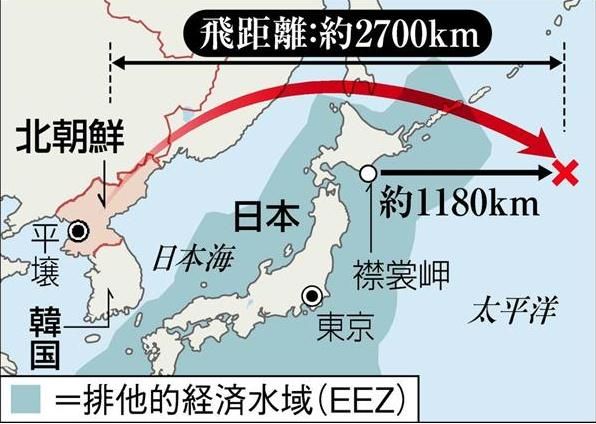 それでも、キチガイどもは、アベガウタセテルーとか、アベノセイデミサイルガーアベオヤメサセロー、ベイグンイラナイーなんて合唱してるんですよね。。。防衛の手段がまったくないことが、これで、少しはわかったかな。。。いつでも、日本を狙えるってことで、それも、北朝鮮は、日本を敵とまでも思ってなくただのアメリカとのかけひきの材料にしかすぎないってこと。。。韓国は、あいかわらず、馬鹿みたいなことばかり言ってるし。。。これで、狙われるのは日本で、自分達は大丈夫だなんて思ってるんだろうなあ。。。【北ミサイル発射】北朝鮮が弾道ミサイルを発射 日本上空を通過 菅官房長官「これまでにない深刻かつ重大な脅威」 政府は29日午前、北朝鮮が日本時間の同日午前5時58分ごろ、北東方向に弾道ミサイルを発射し、6時7分ごろに北海道の上空を通過、6時12分に襟裳岬の東方約1180キロの太平洋上に3つに分離して落下したと発表した。韓国軍合同参謀本部によると、発射された弾道ミサイルは1発で、飛行距離は約2700キロ、最大高度は約550キロ。首都平壌の順安(スナン)区域付近から発射された。 政府によると、発射を受けて全国瞬時警報システム(Jアラート)が12道県に発令された。落下物などによる被害は確認されていない。自衛隊法に基づく破壊措置は実施しなかった。 米韓両軍は21日から合同軍事演習「乙支(ウルチ)フリーダムガーディアン」を行っており、演習に対抗した形だ。北朝鮮は26日にも短距離弾道ミサイルとみられる3発を発射したばかり。 政府は国家安全保障会議(NSC)を招集。記者会見した菅義偉(すが・よしひで)官房長官は「アジア太平洋地域の平和を脅かすものだ」と北朝鮮を強く非難した。安倍晋三首相は首相官邸で記者団に、「これまでにない深刻かつ重大な脅威で、地域の平和と安全を著しく損なうものだ。国民の安全、安心の確保に万全を期す」と述べた。 一方、米国防総省のマニング報道官は28日、「北朝鮮が発射したミサイルが日本上空を通過したことを確認した」と発表。北米航空宇宙防衛司令部(NORAD)は、北米に脅威を及ぼすものではなかったとした。
