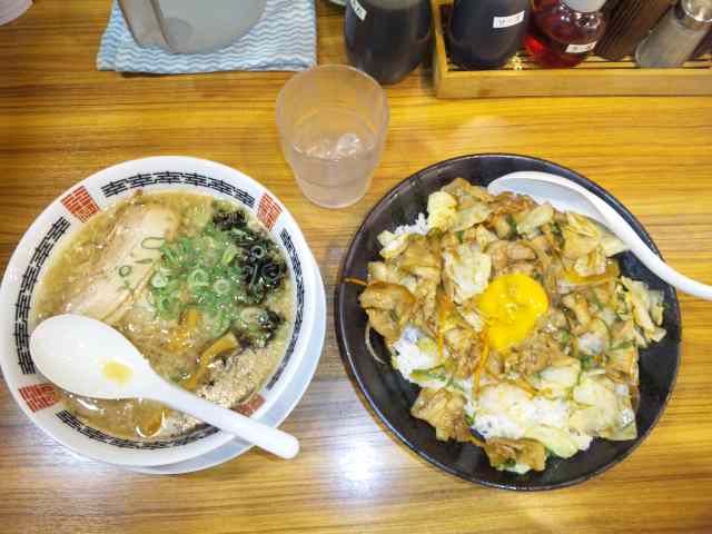 +50円で、こく旨豚骨醤油ラーメンにしましたよ。豚皿は、スタミナです。