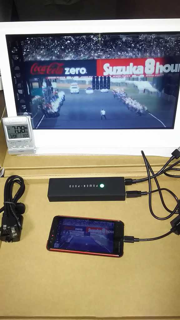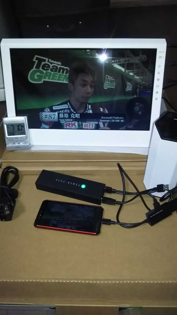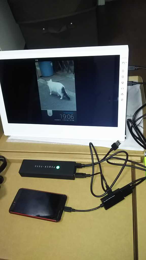 モバイルバッテリーで、On-LapとMHL-HDMI変換の電源を取ります。
