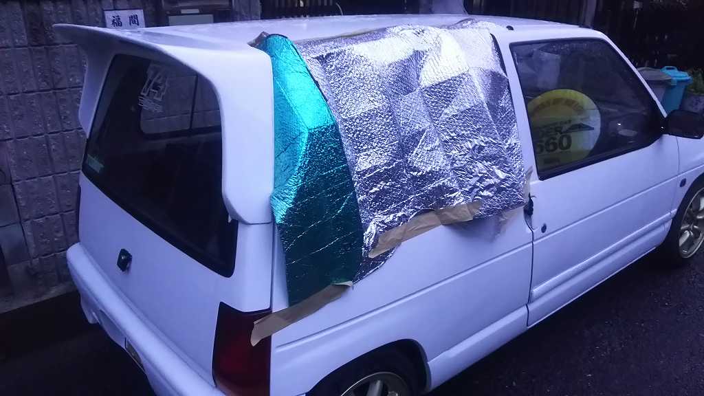 ゴミ袋とかガムテで固定したら、はいだときに塗装ちょっと剥げたり。。。