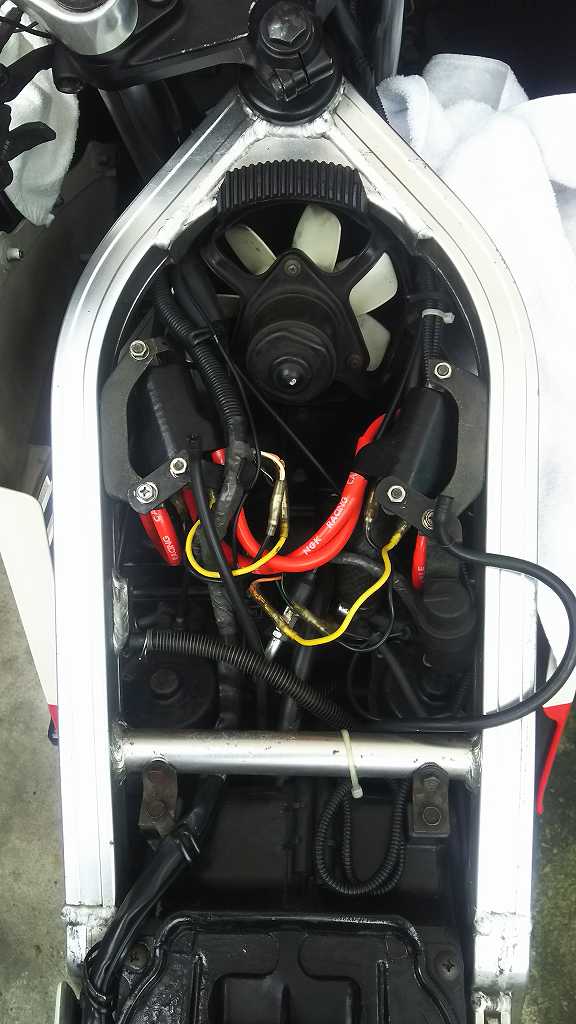 両方のイグニッションコイル外して、純正にあわせて、NGKのハイテンションケーブルを切ります