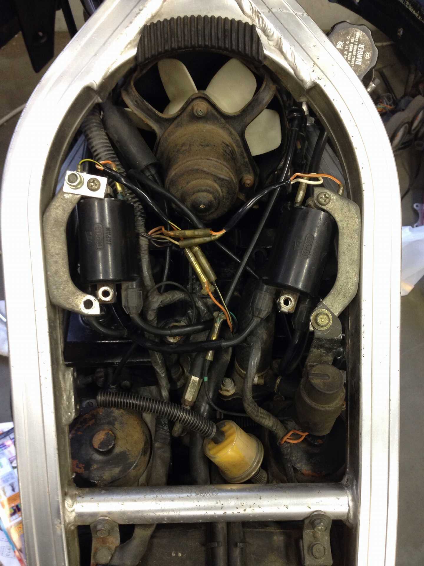 私のGK71Bは、タンクを外した状態なので、カバー外して、そこにCB750用のコイルを当てて、どう設置するか検討。。。