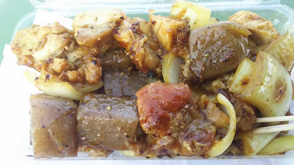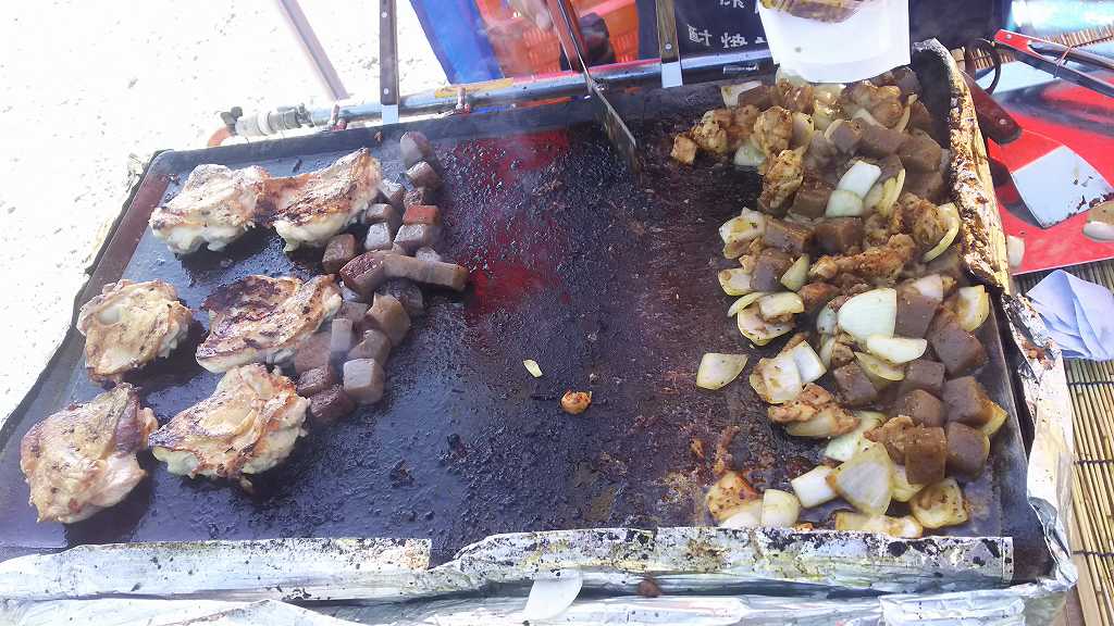 鶏肉、コンニャク、玉葱です。。。胡椒がきいてるのかな まあ、おいしいですよ