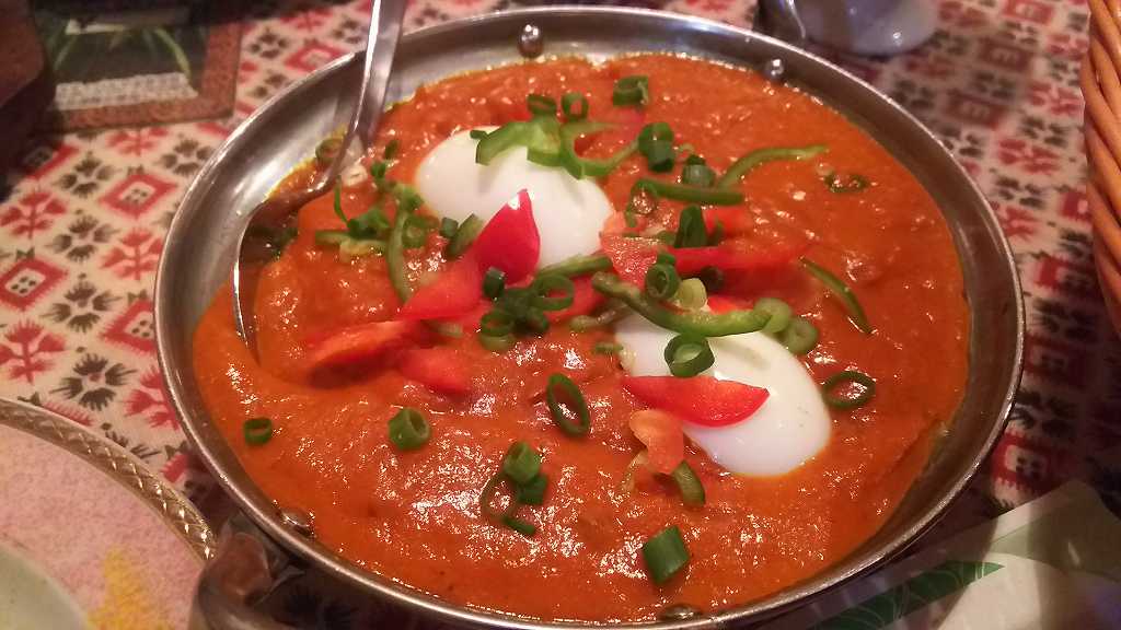 私は、マトンマサラの15辛を頼んでみました。山田先生は、ポークマサラの3辛です。