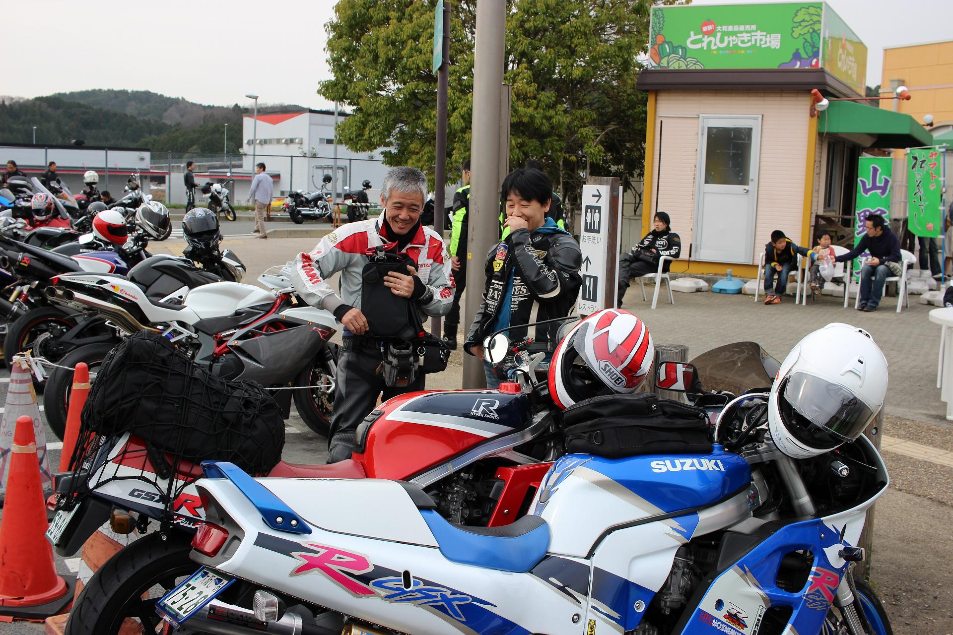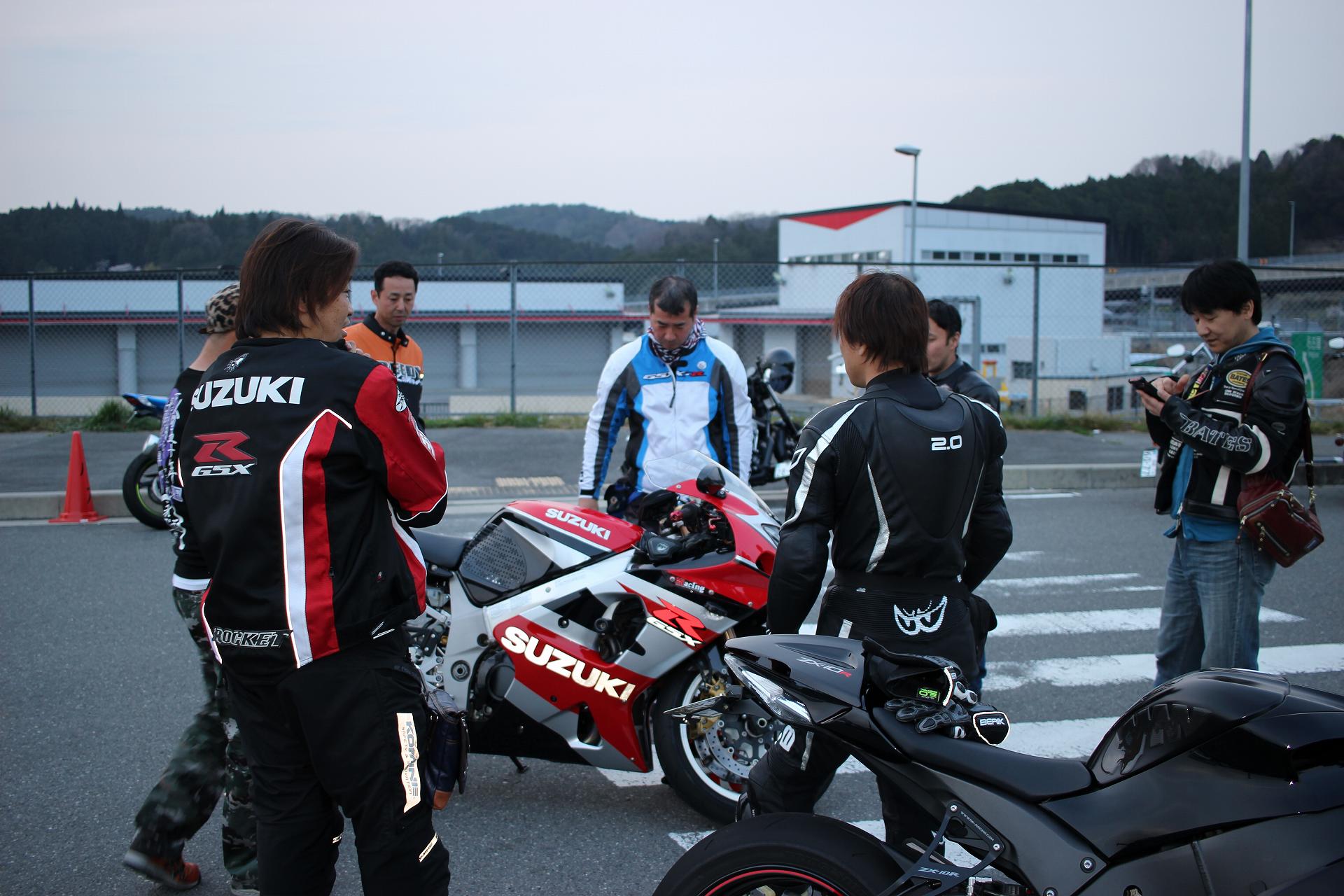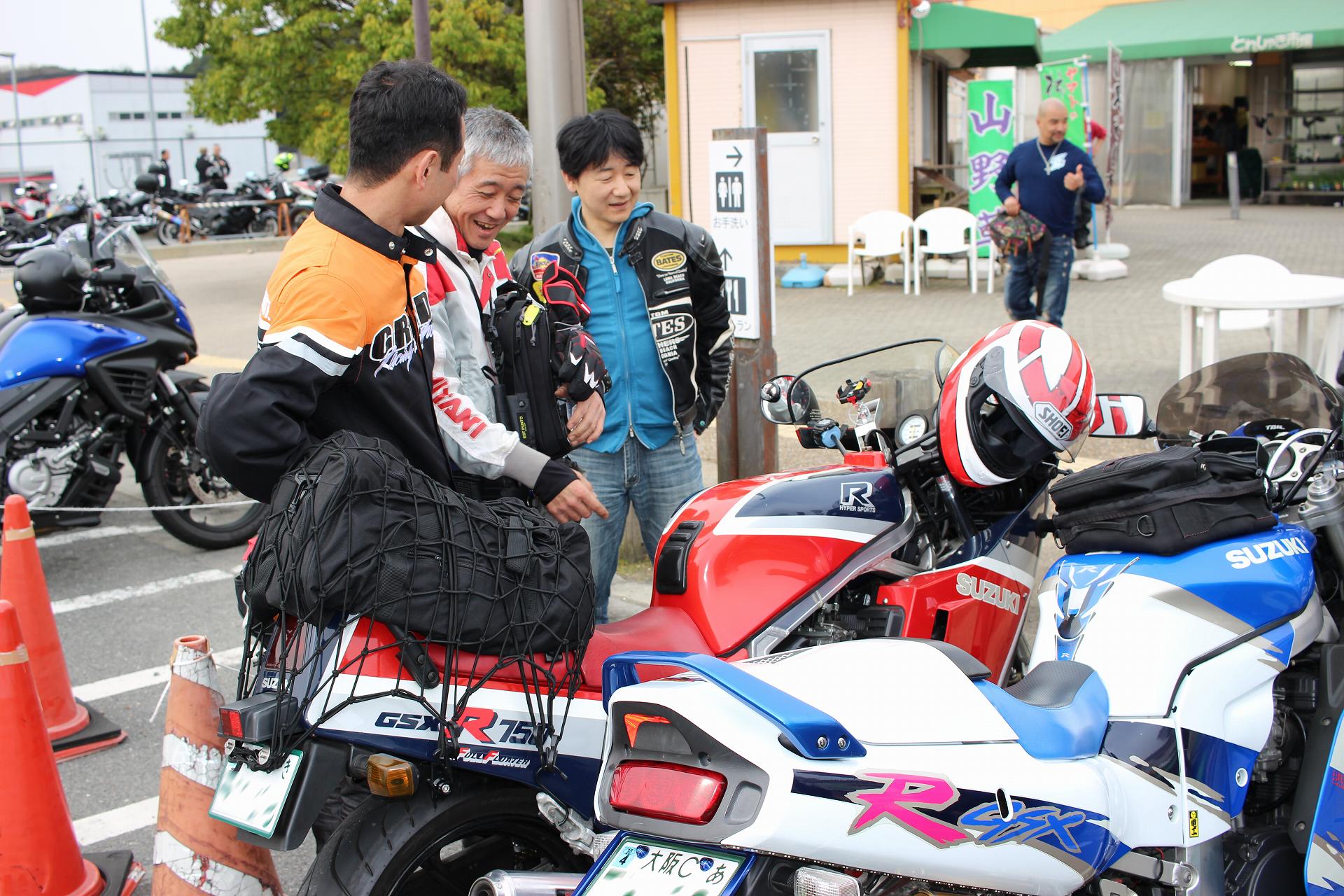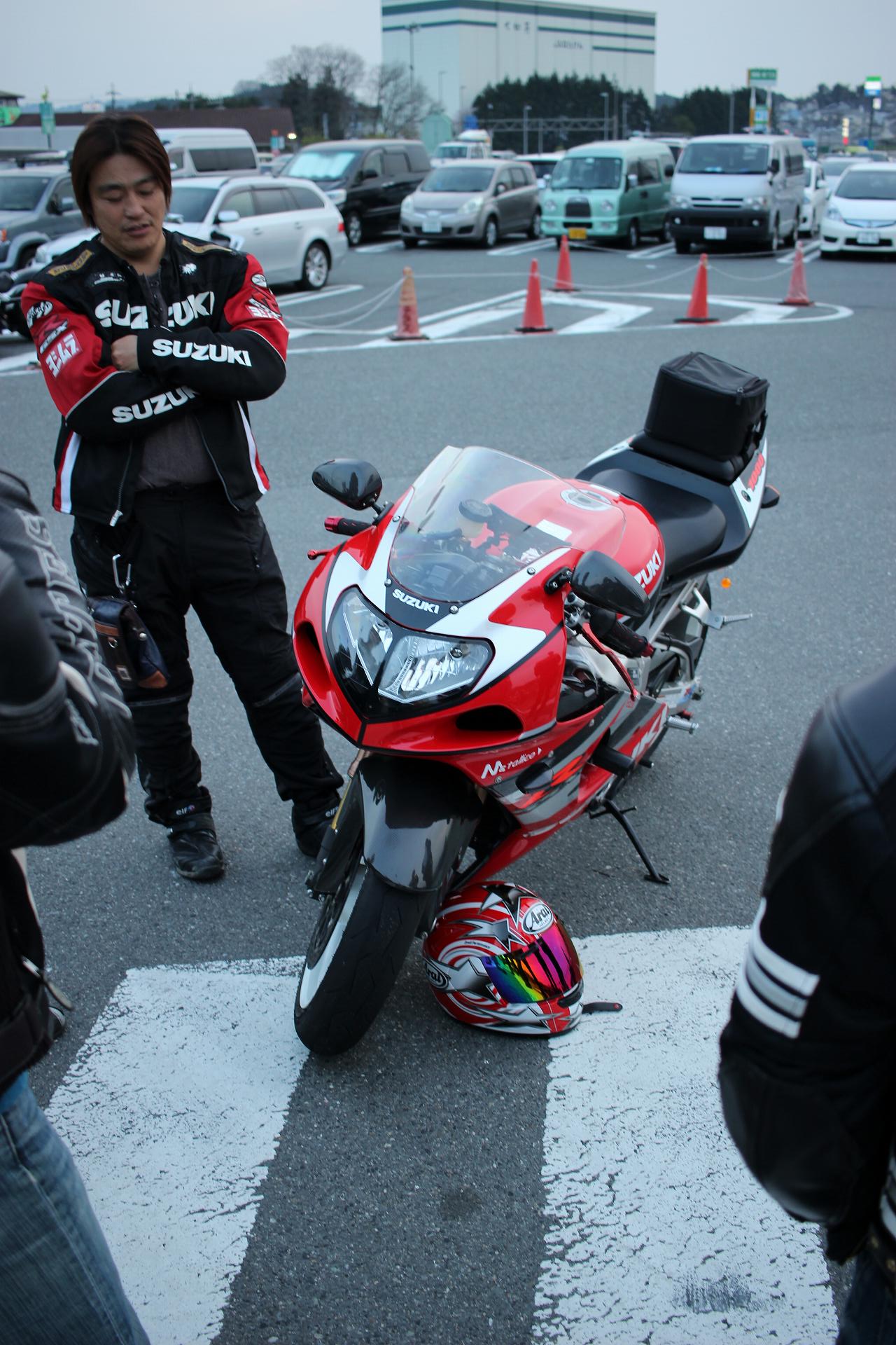 みんなで、話してるときに、WW GSX-Rの後ろで立ちゴケしてる方がいて、ぎりぎりセーフだったり