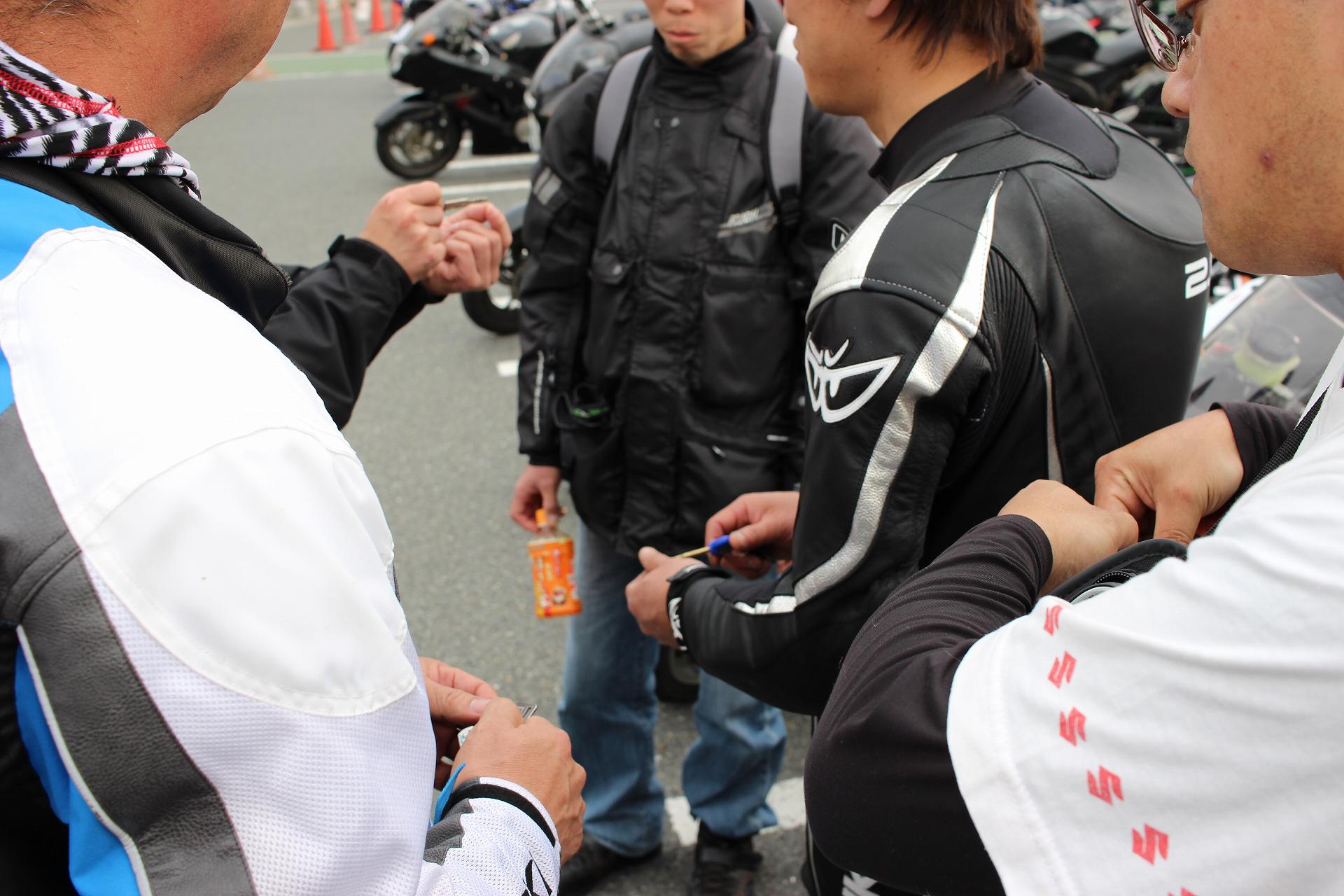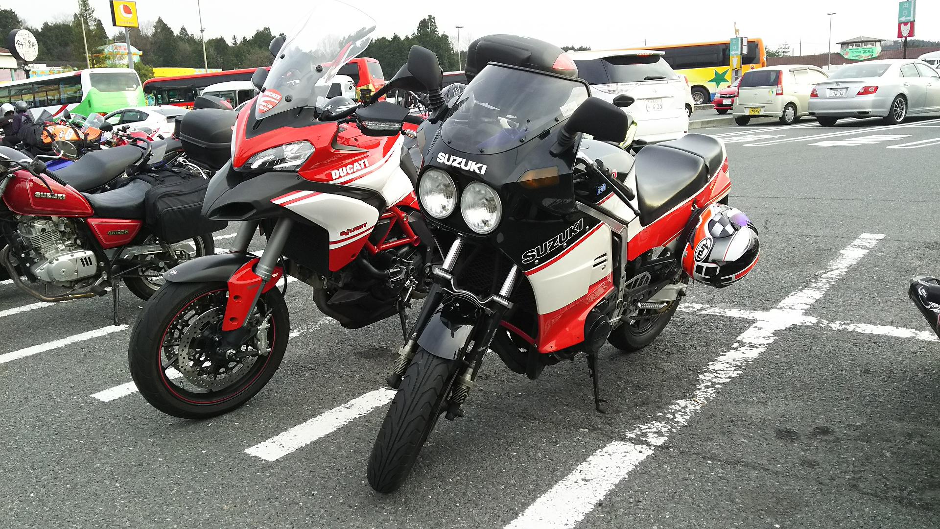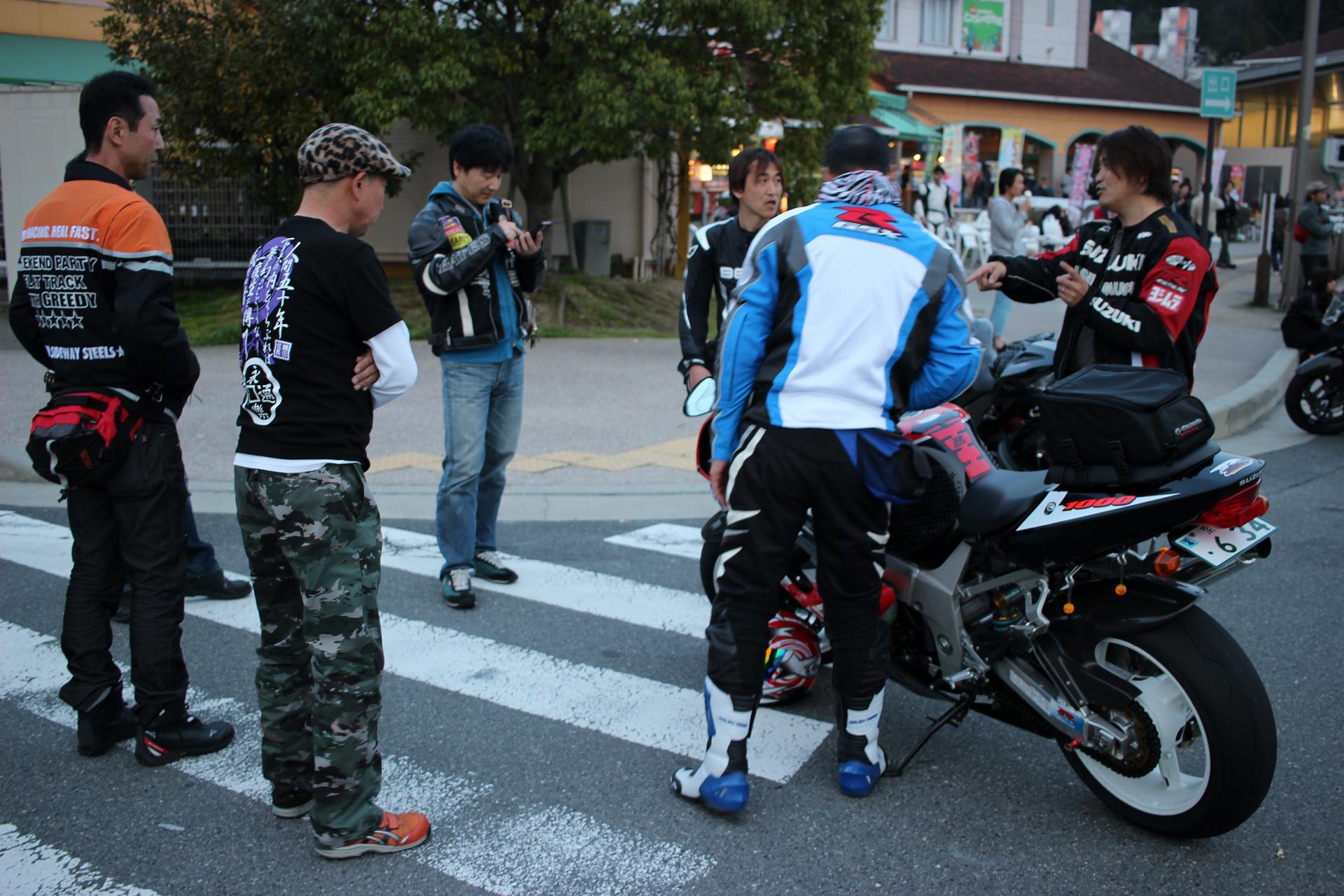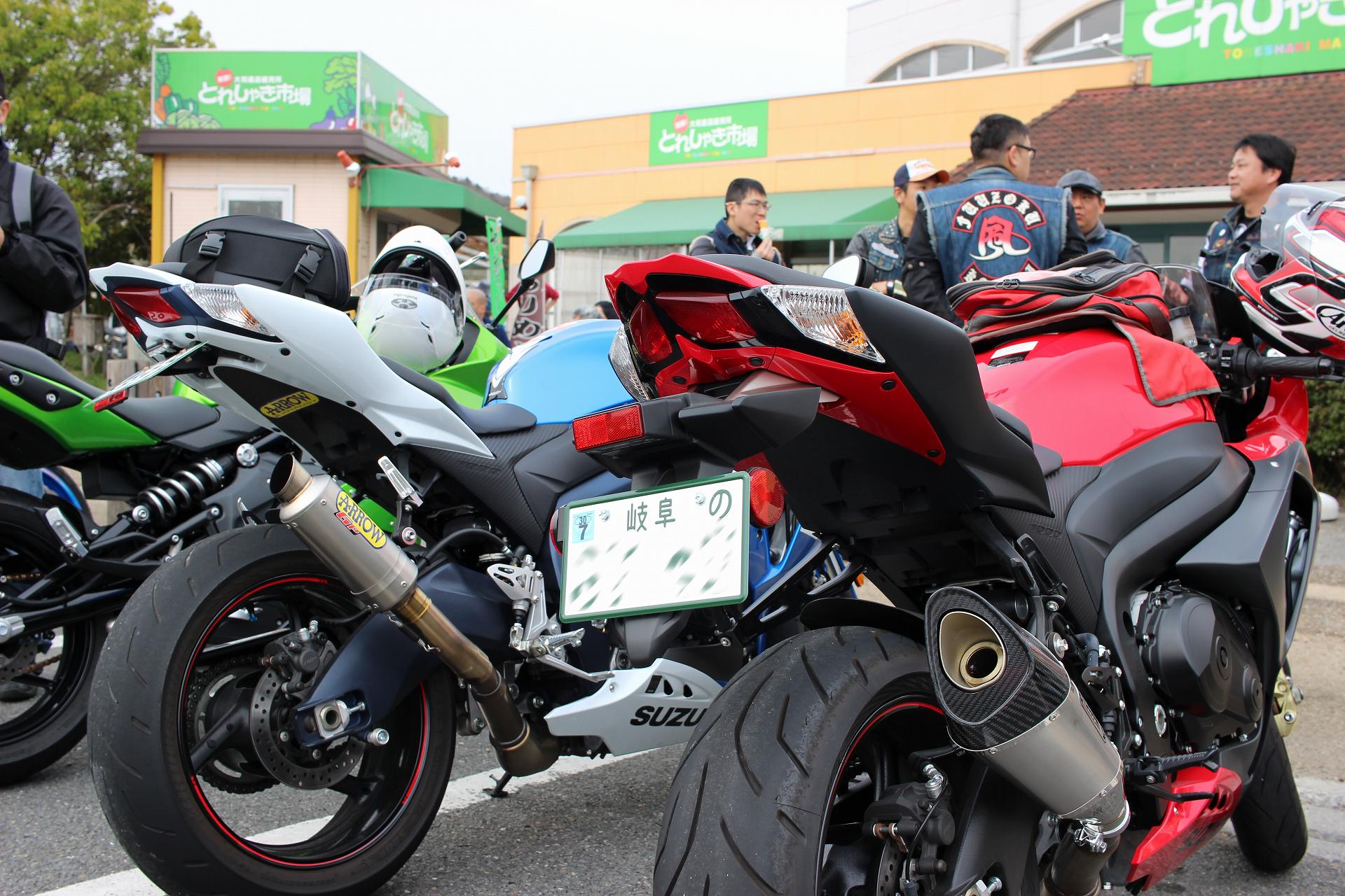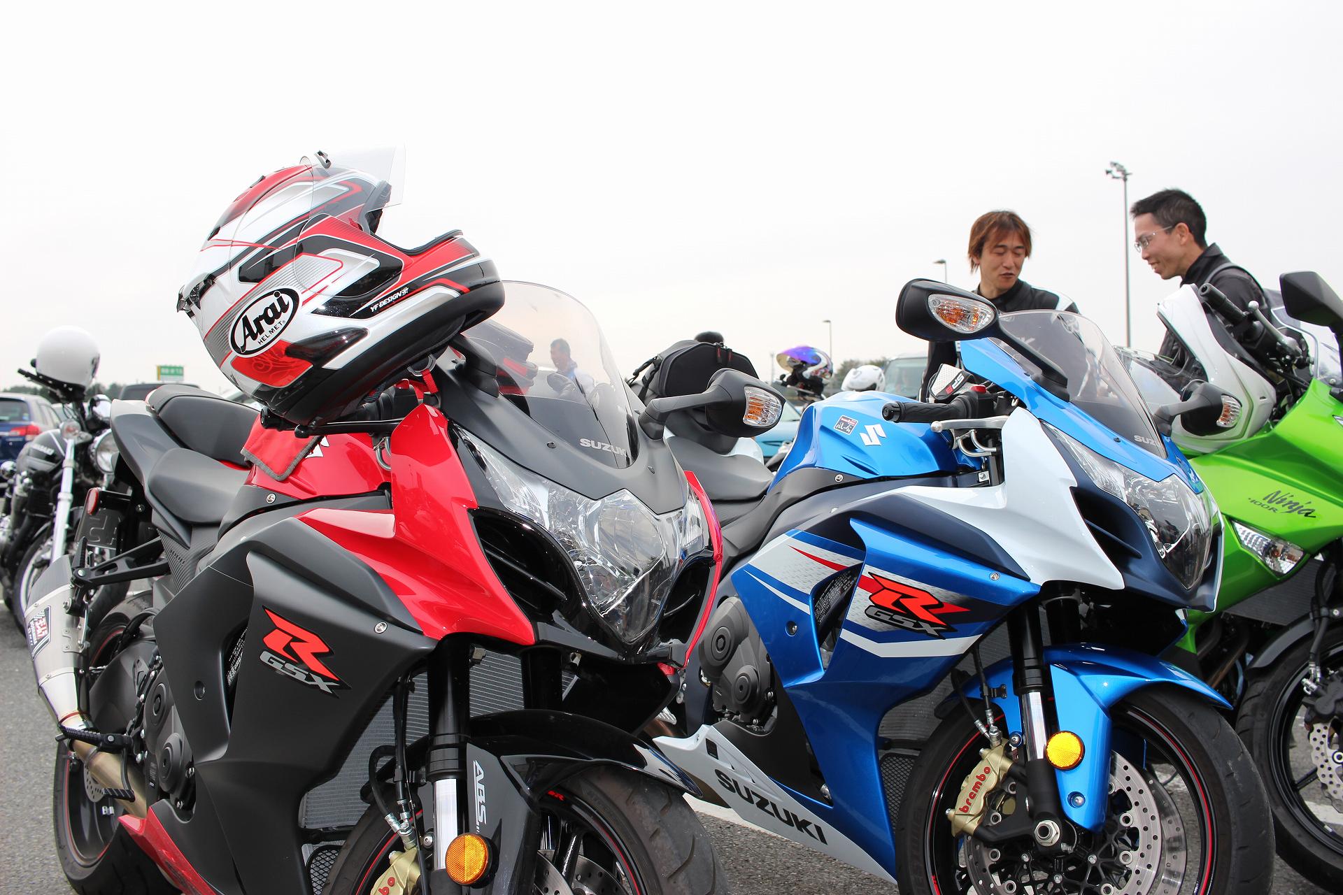 みんなで、話してるときに、WW GSX-Rの後ろで立ちゴケしてる方がいて、ぎりぎりセーフだったり