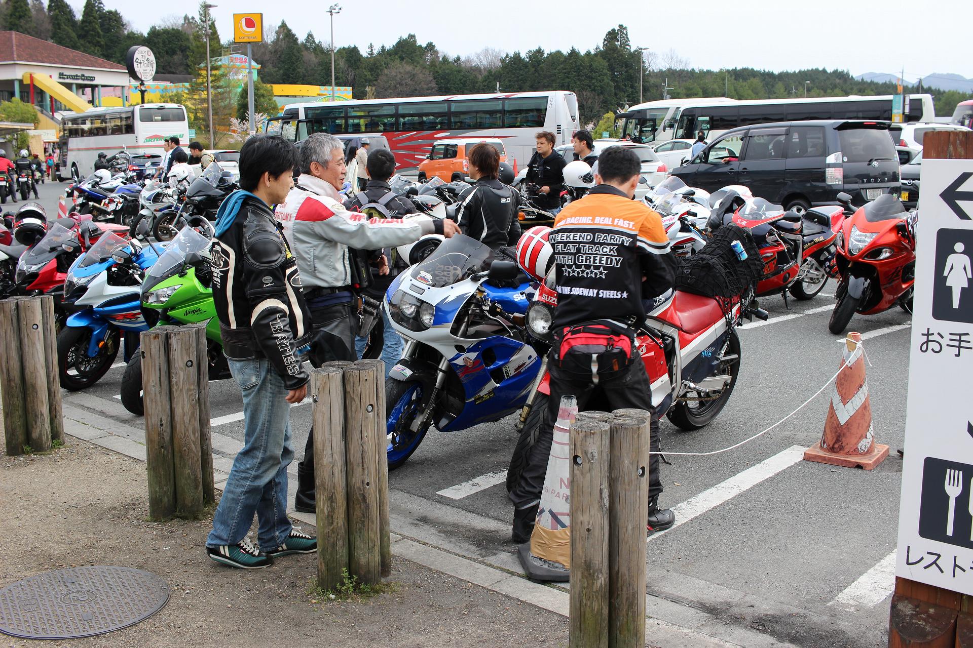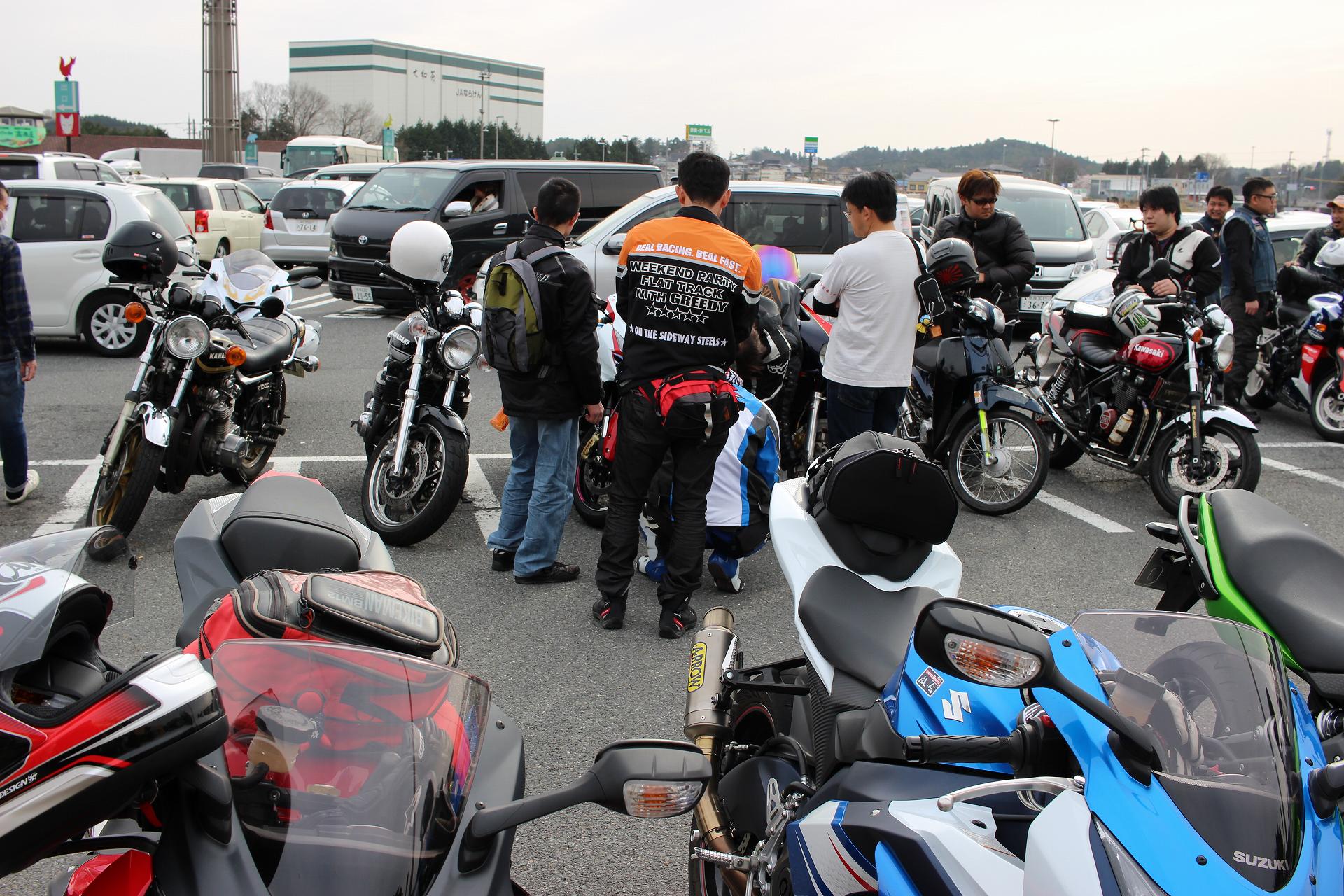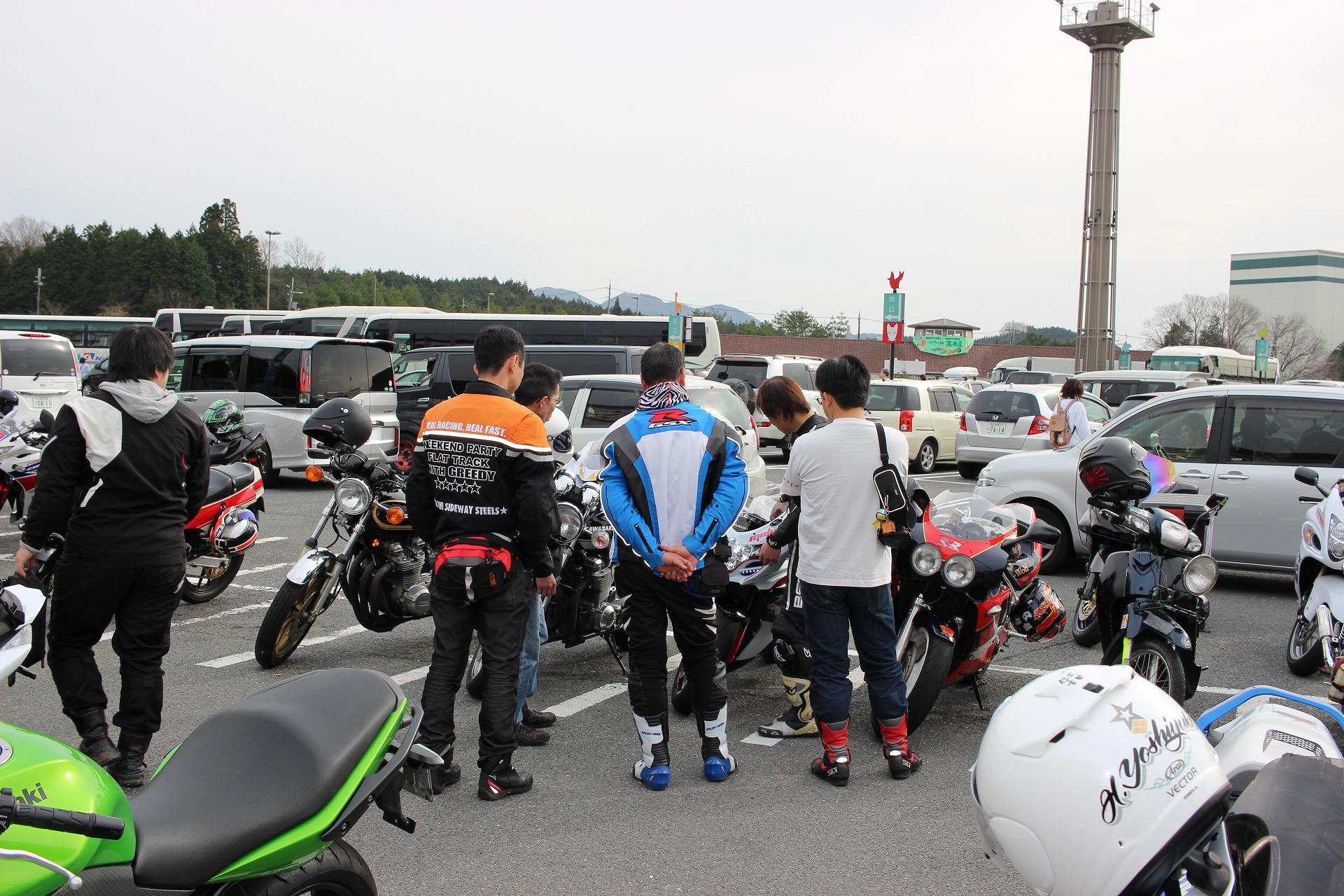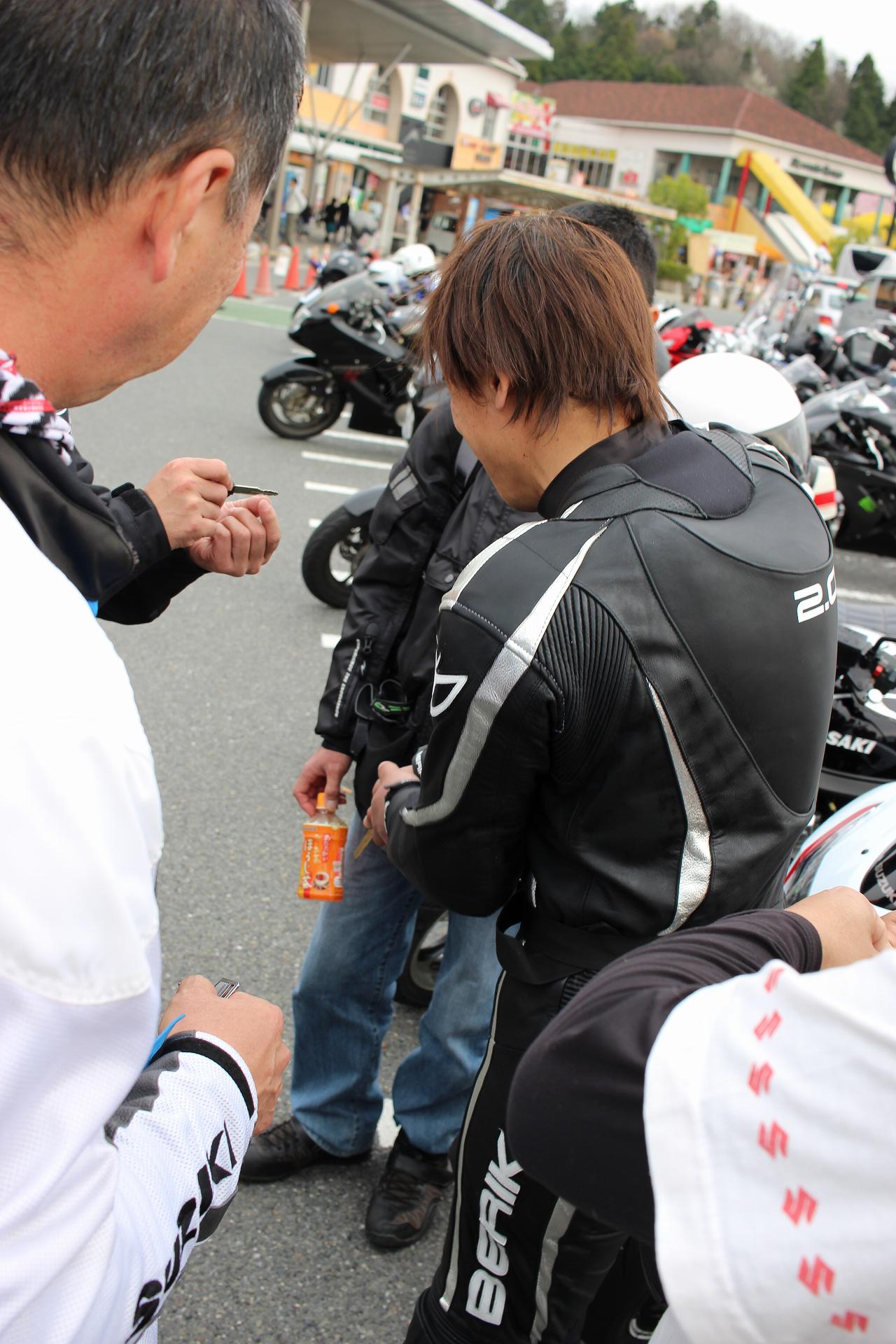 みんなで、話してるときに、WW GSX-Rの後ろで立ちゴケしてる方がいて、ぎりぎりセーフだったり