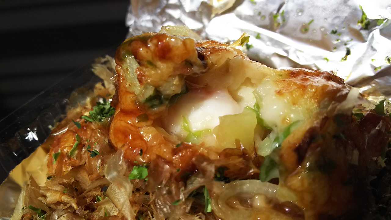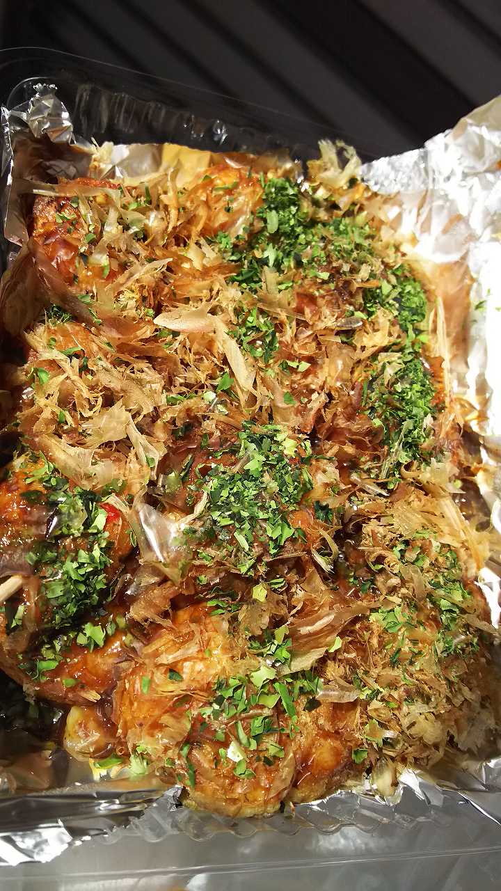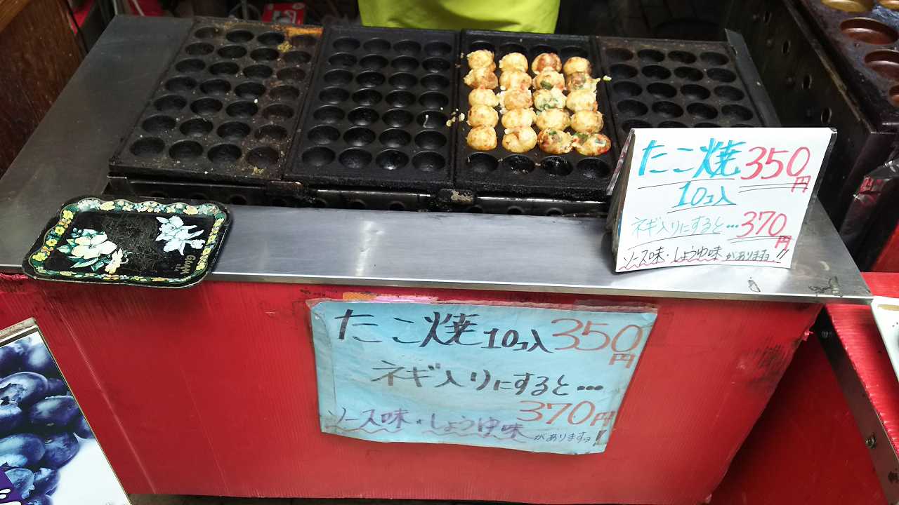 10個で350円。ネギ入りで370円。焼いてるとこは小さく見えたけど、けっこうでかい。