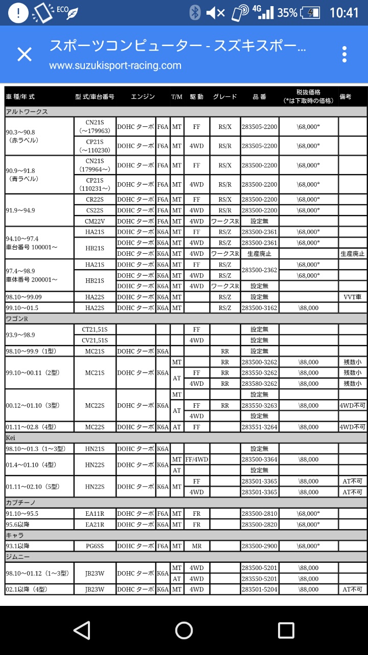 うちのアルト君にのってるエンジンが、どの車種なのか。。。
