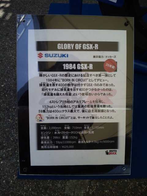 GSX-R 31周年っていうわけで、31周年のGSX-Rをメインに展示されている鈴木さん。。。