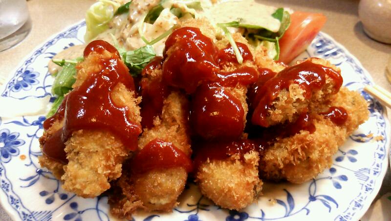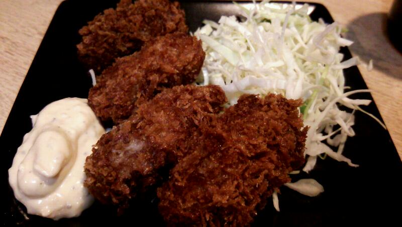 牡蠣フライ、えらい色でびっくりしましたが、そこそこおいしいです。