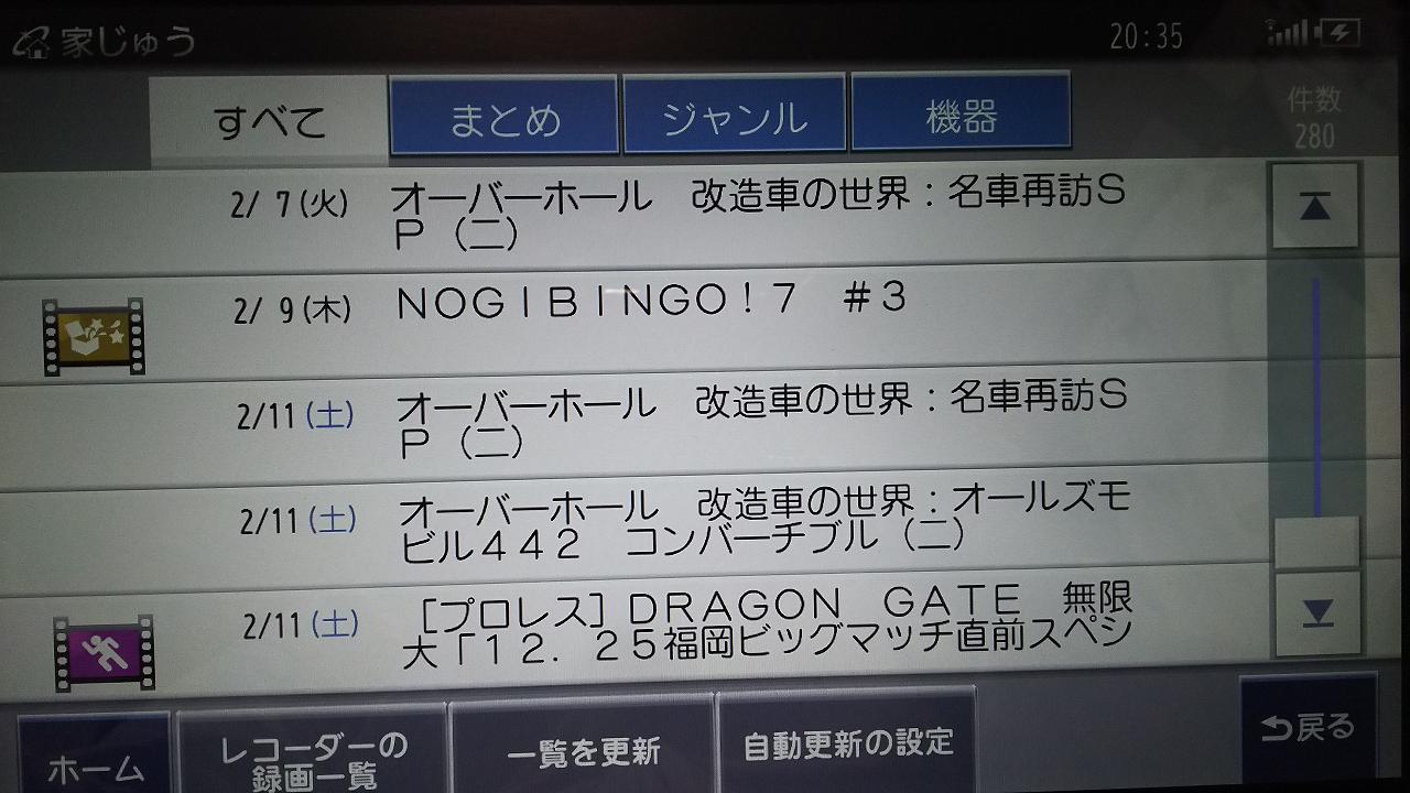 Digaの録画したのが一覧で見れます。HDD切り替えすると、外部USBも見れます。
