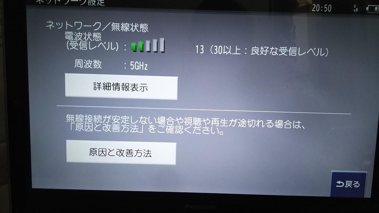 今は、DMR-BRZ1000と直接接続されている状態なので、他のWi-fiみてみます。電波弱いな。。。これは、リピーターを導入するつもりです。1階AVルームでの状況