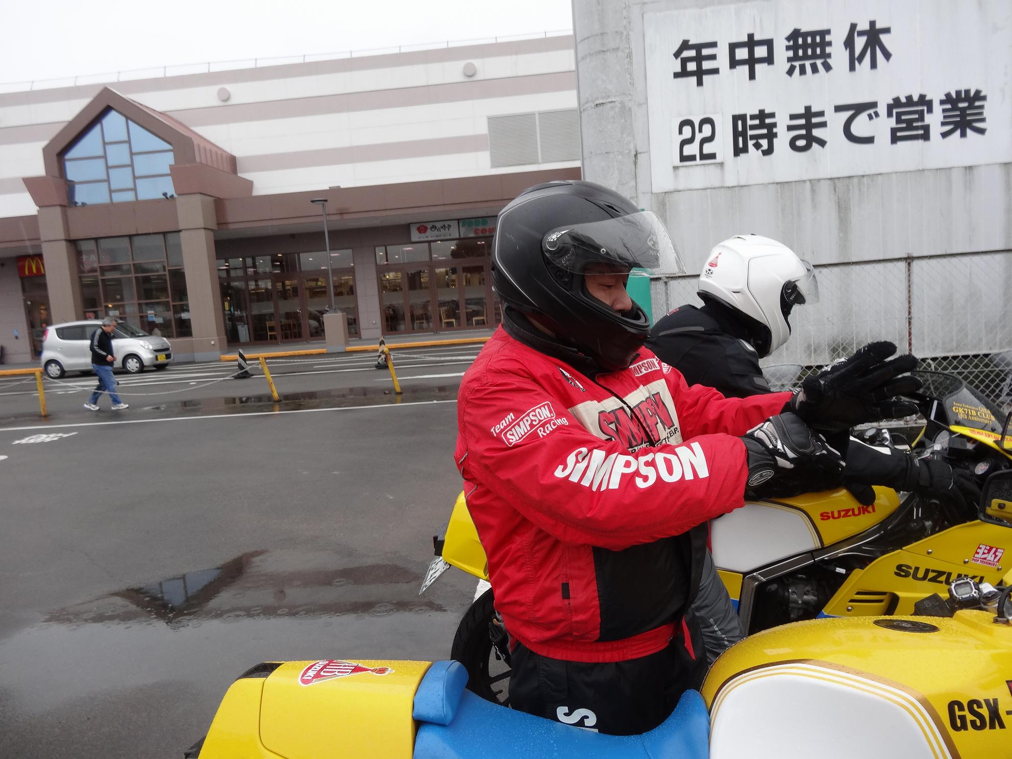 さあ、さすがに、ここからは、レインスーツの下を出してはいていきます