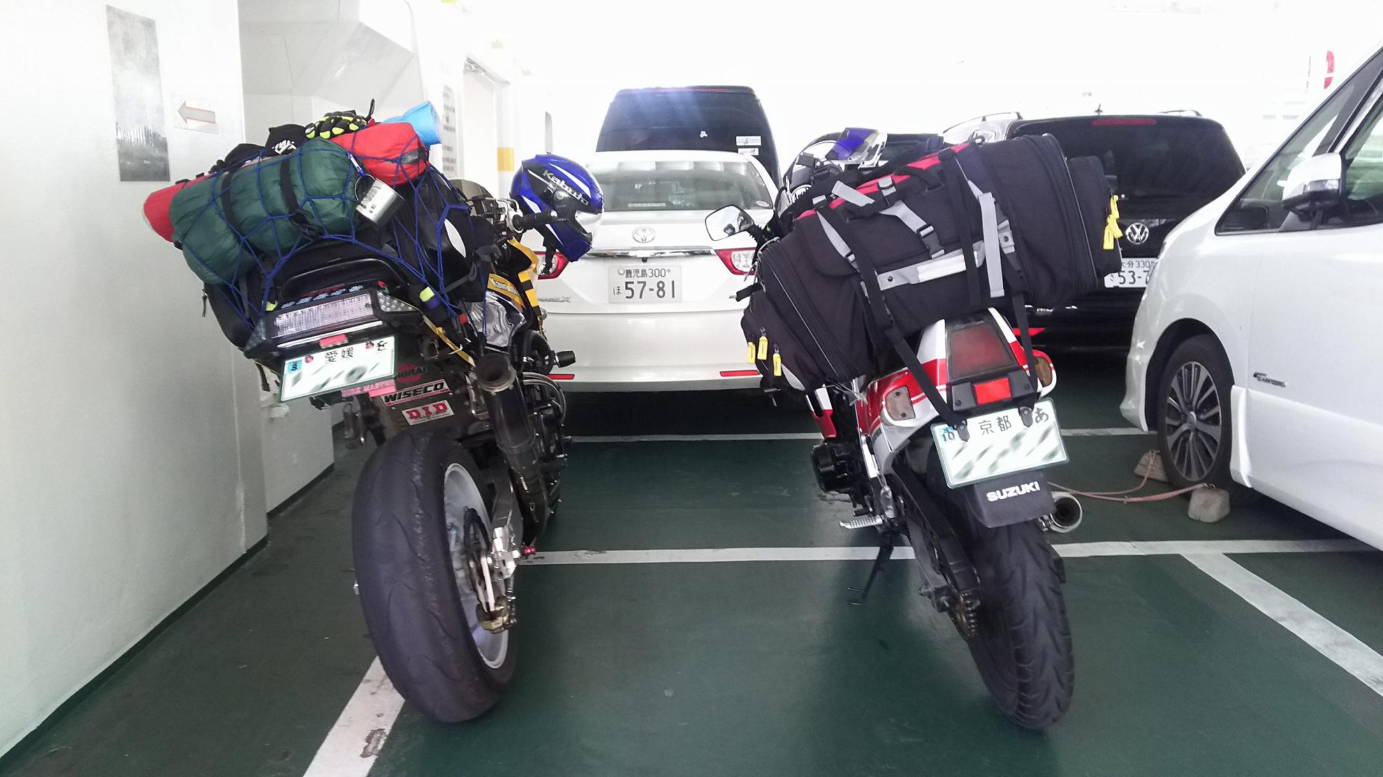 大きなフェリーと違って、車輪止めもなにもしてくれてなくて。。。