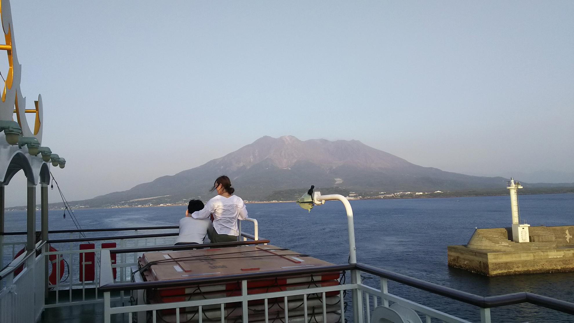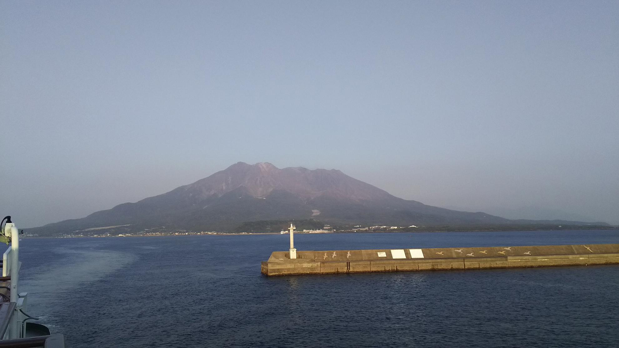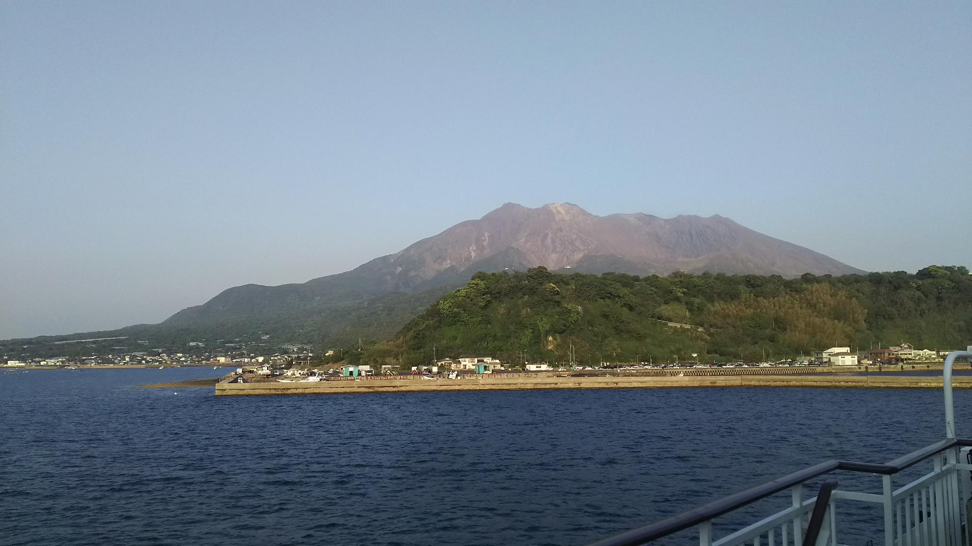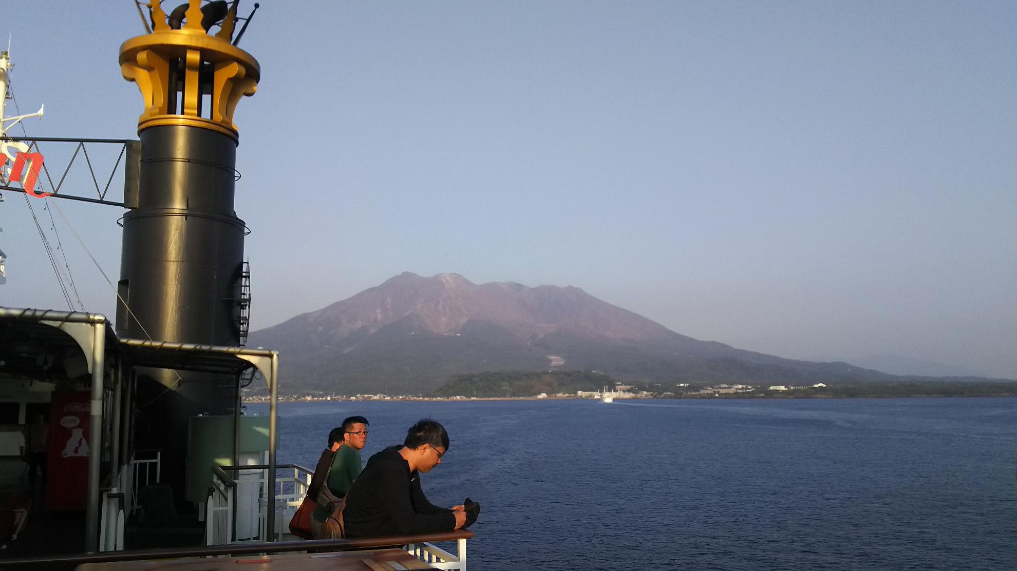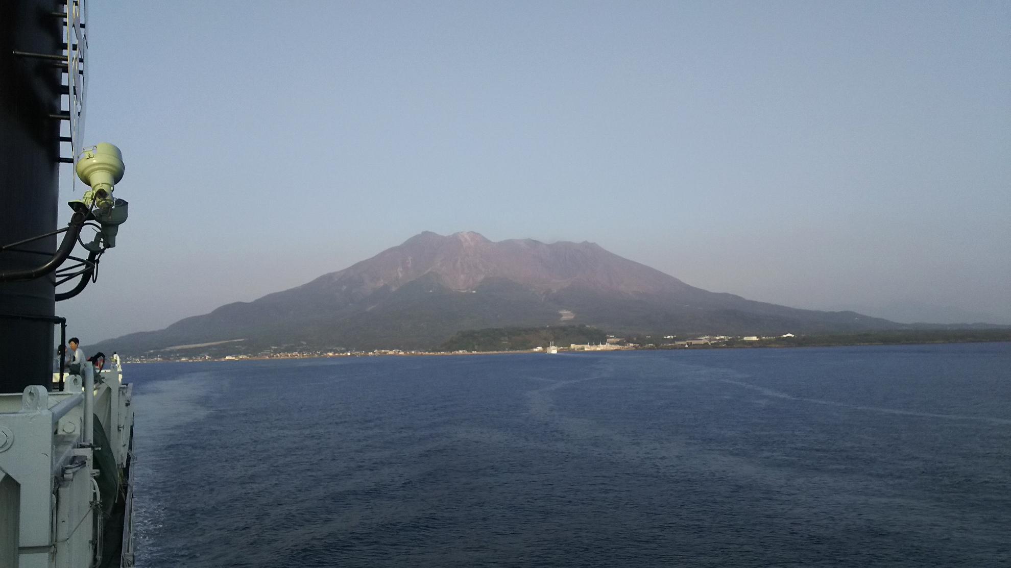 接岸するまでは、上に行って、桜島眺めてました