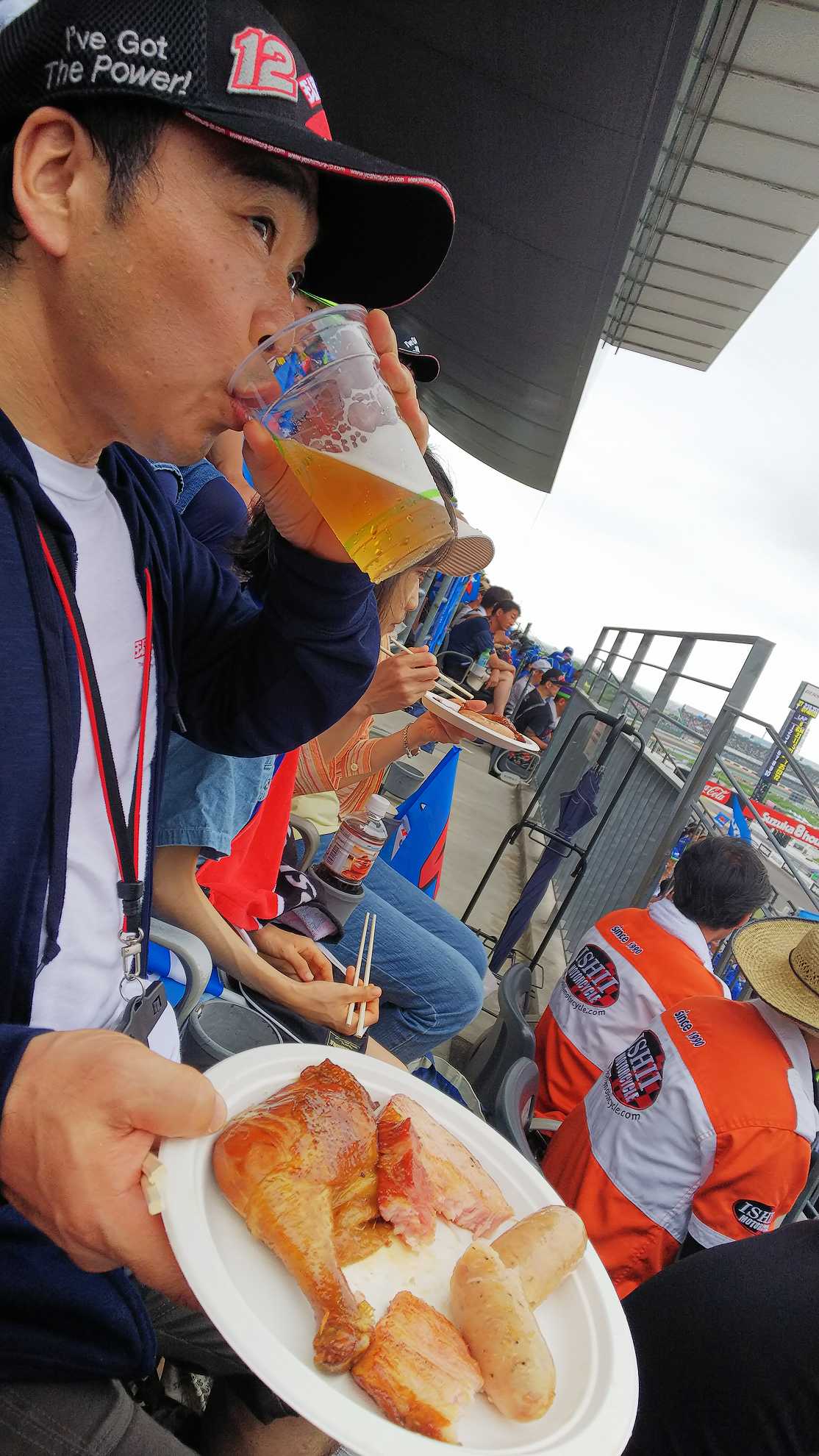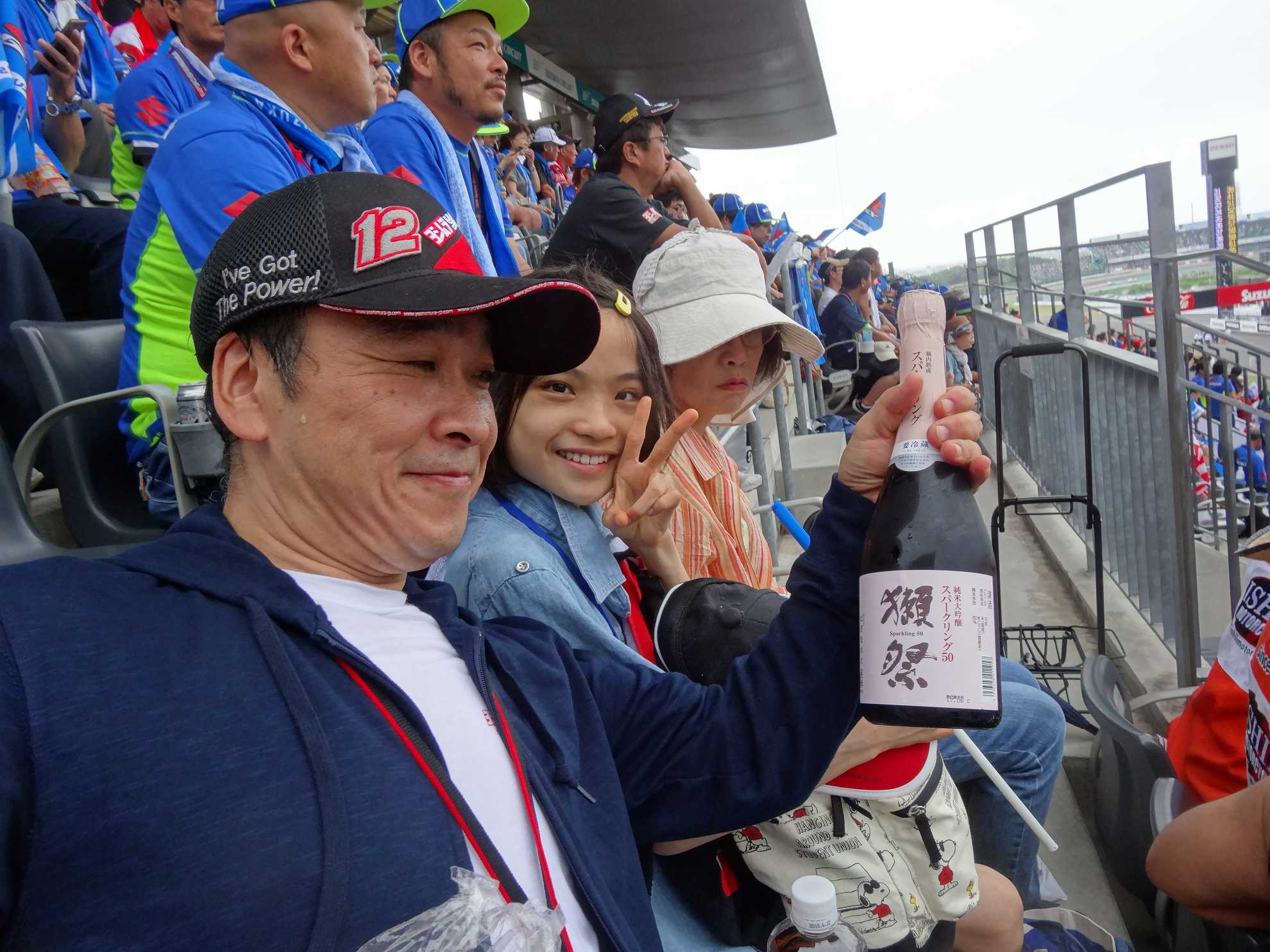 山田先生ファミリーとSUZUKI応援席で!!今年は、獺祭のスパークリングをいただきました!!
