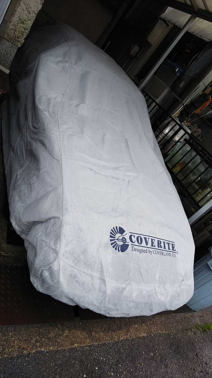 朝、雨はやみましたが、カーカバーは、こんな状態。