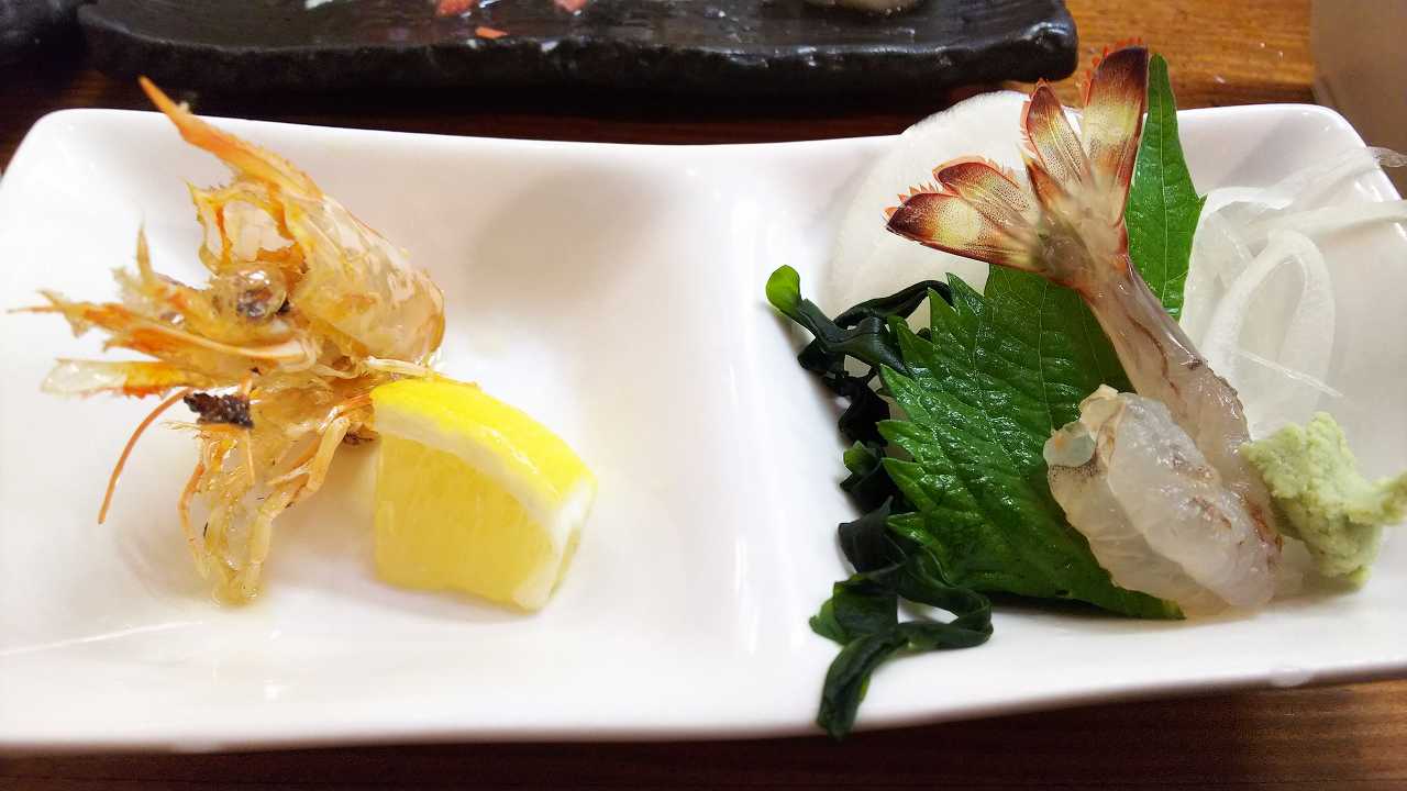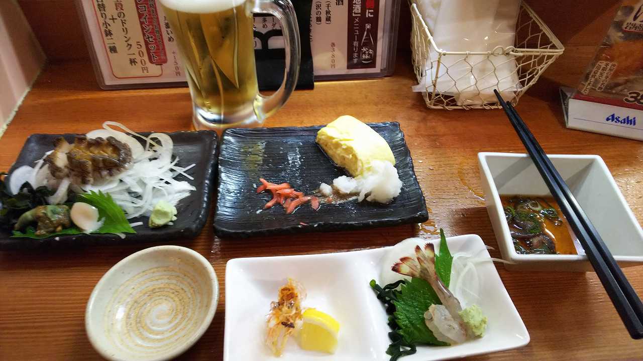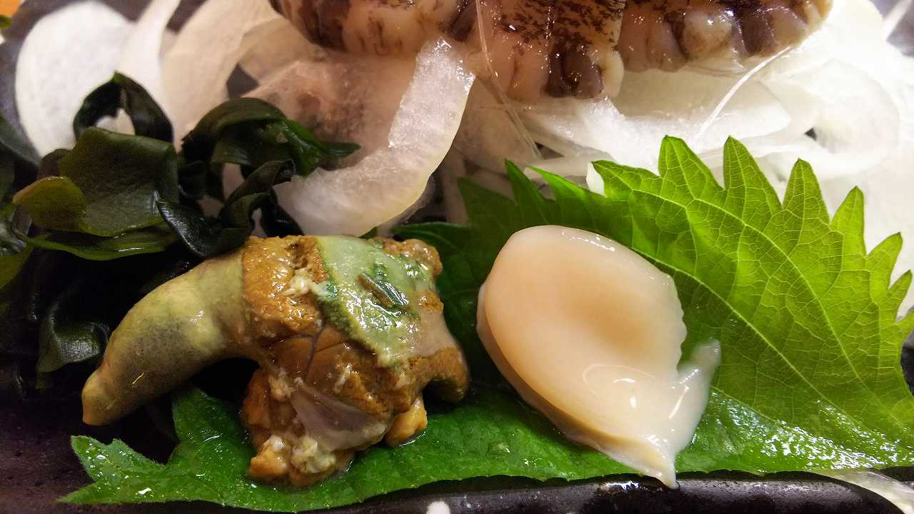 ここで大好きな、アワビ、車エビ、だし巻き、ナマコ酢!