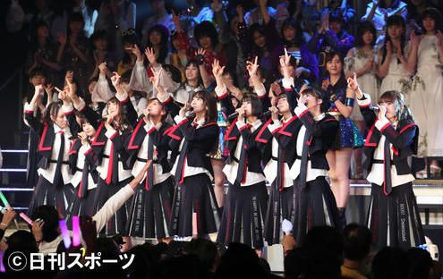 2015年8月、初ステージで歌を披露するNGT48のメンバー=新潟市
