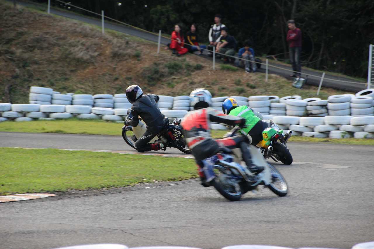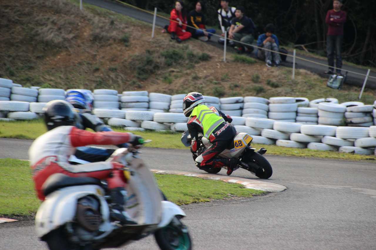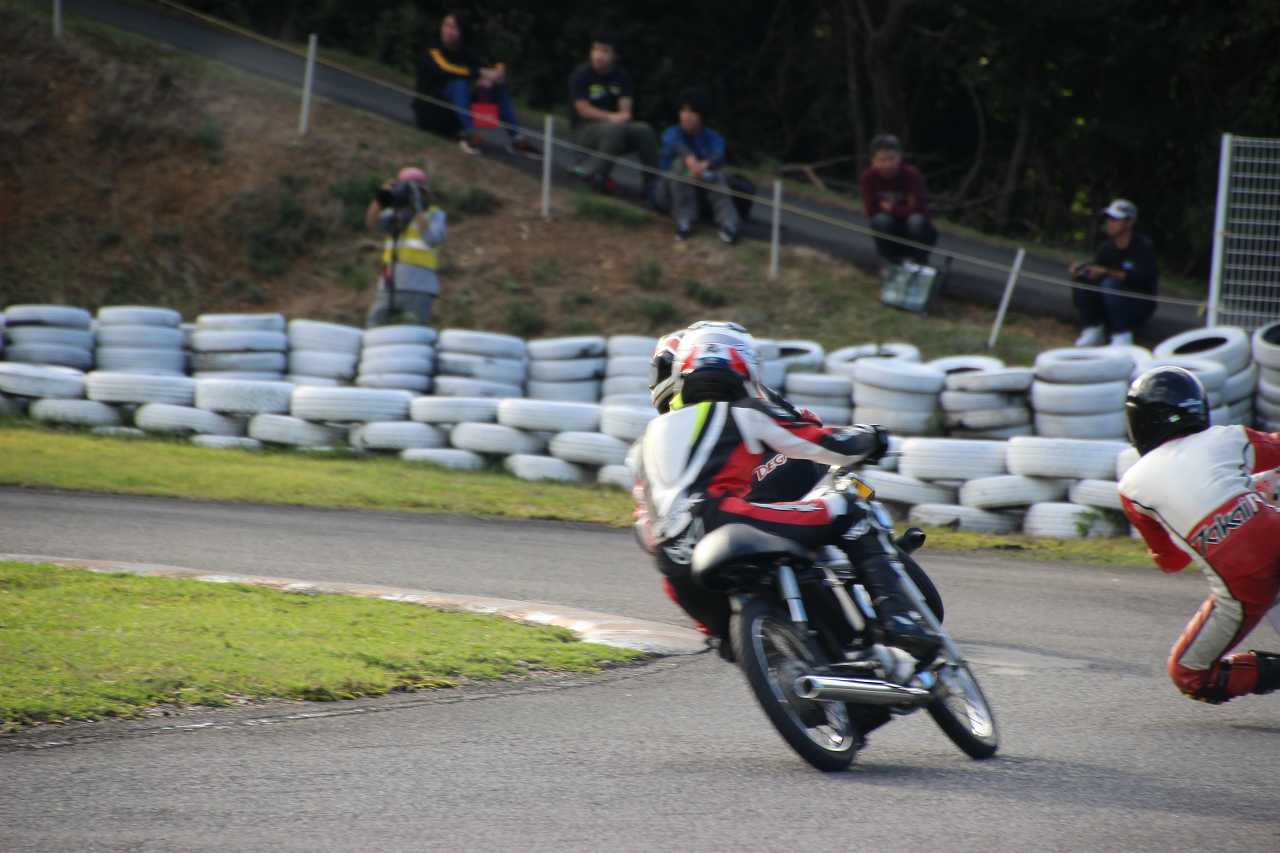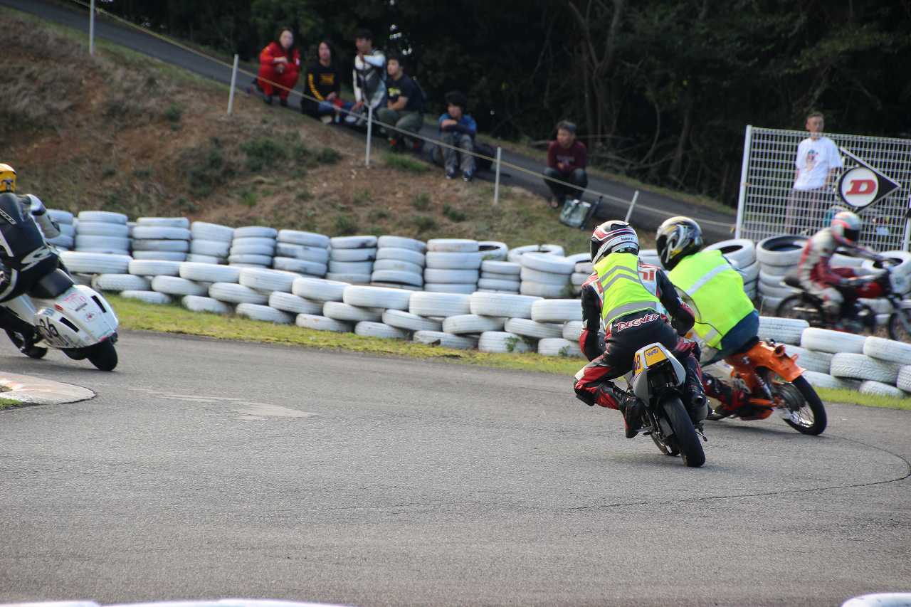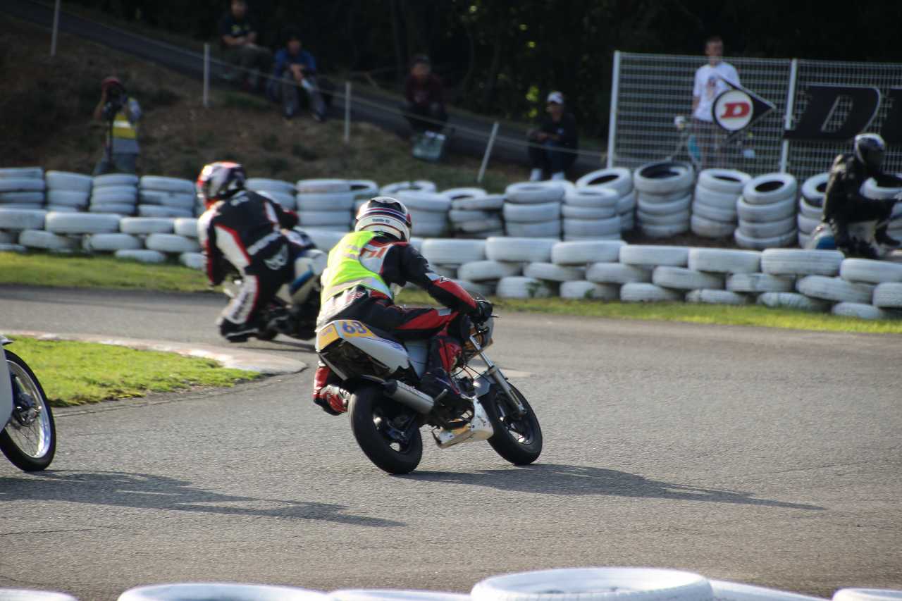 最後の最後で、前のバイクに行き場を塞がれ、クラッシュ!!!!!!!!!!
