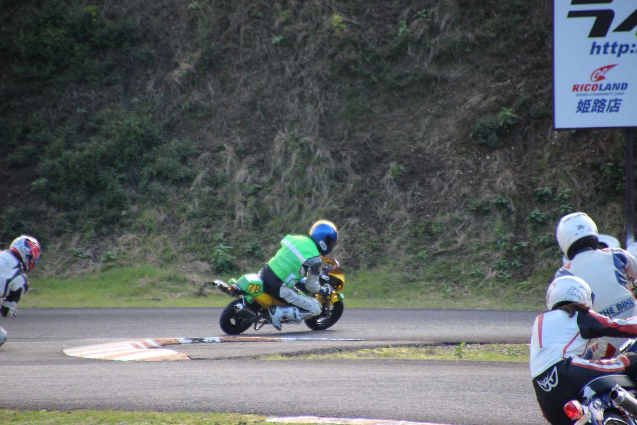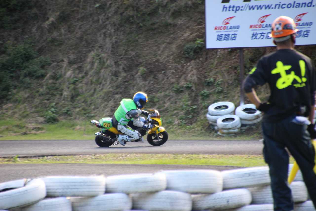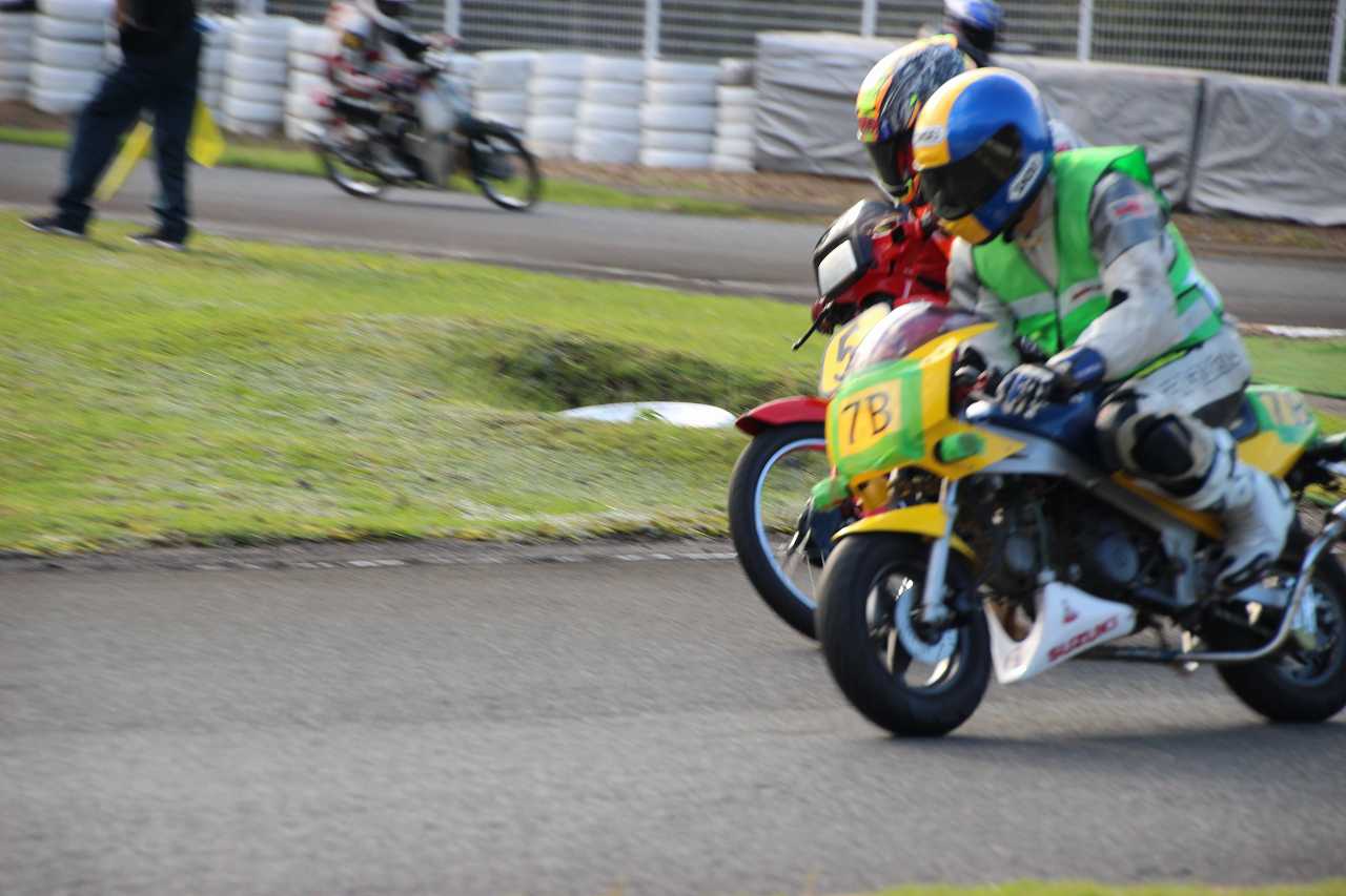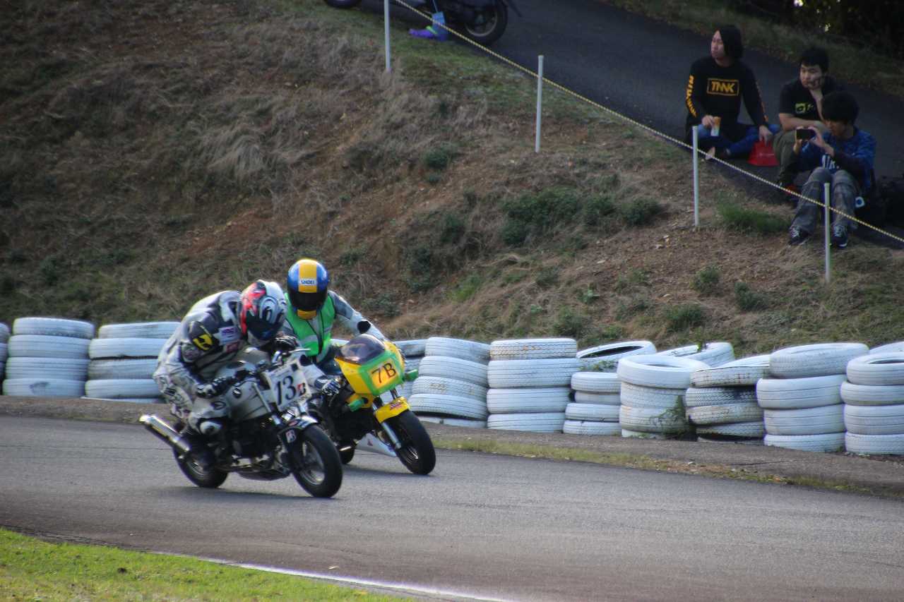最後の最後で、前のバイクに行き場を塞がれ、クラッシュ!!!!!!!!!!