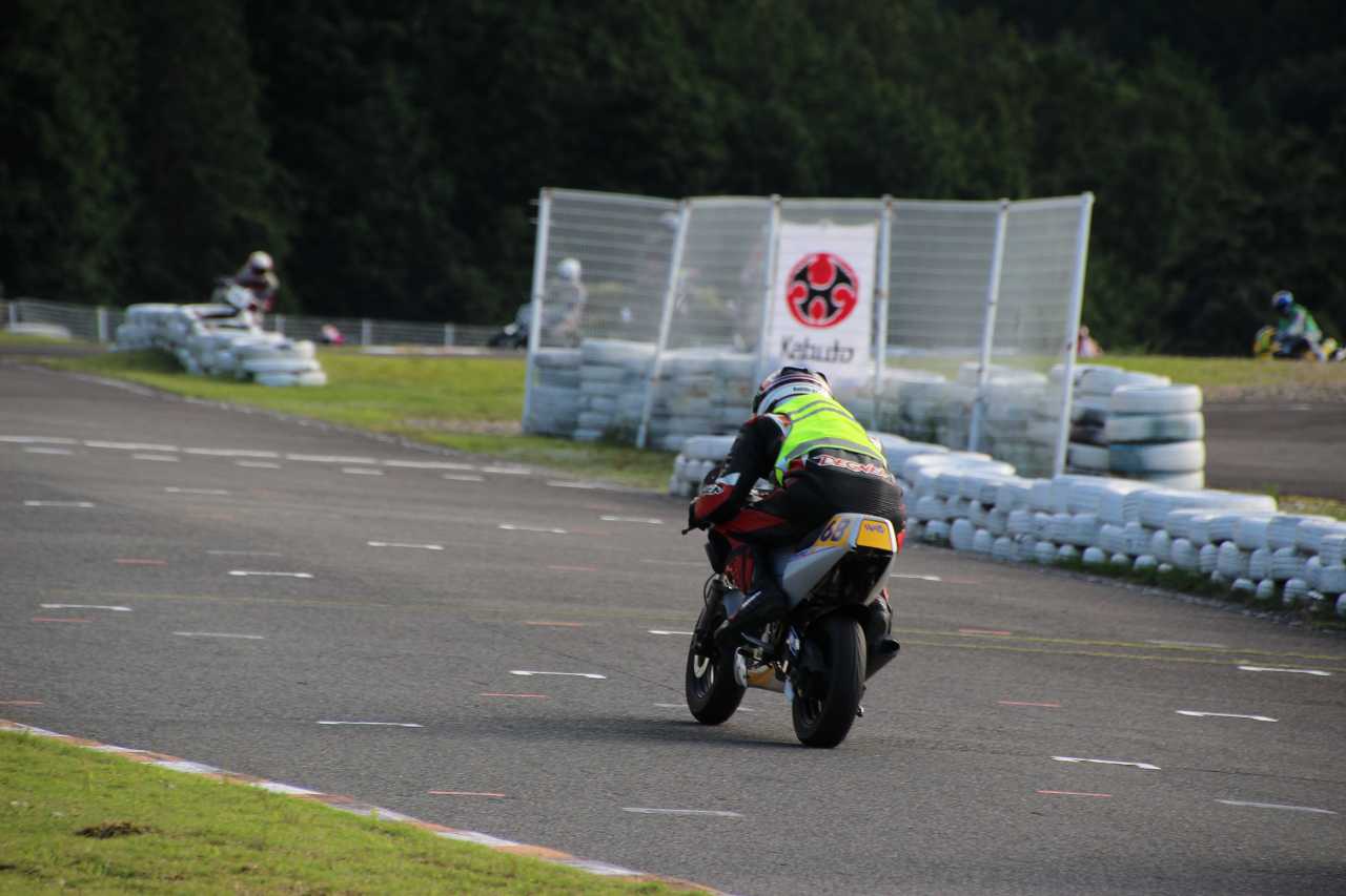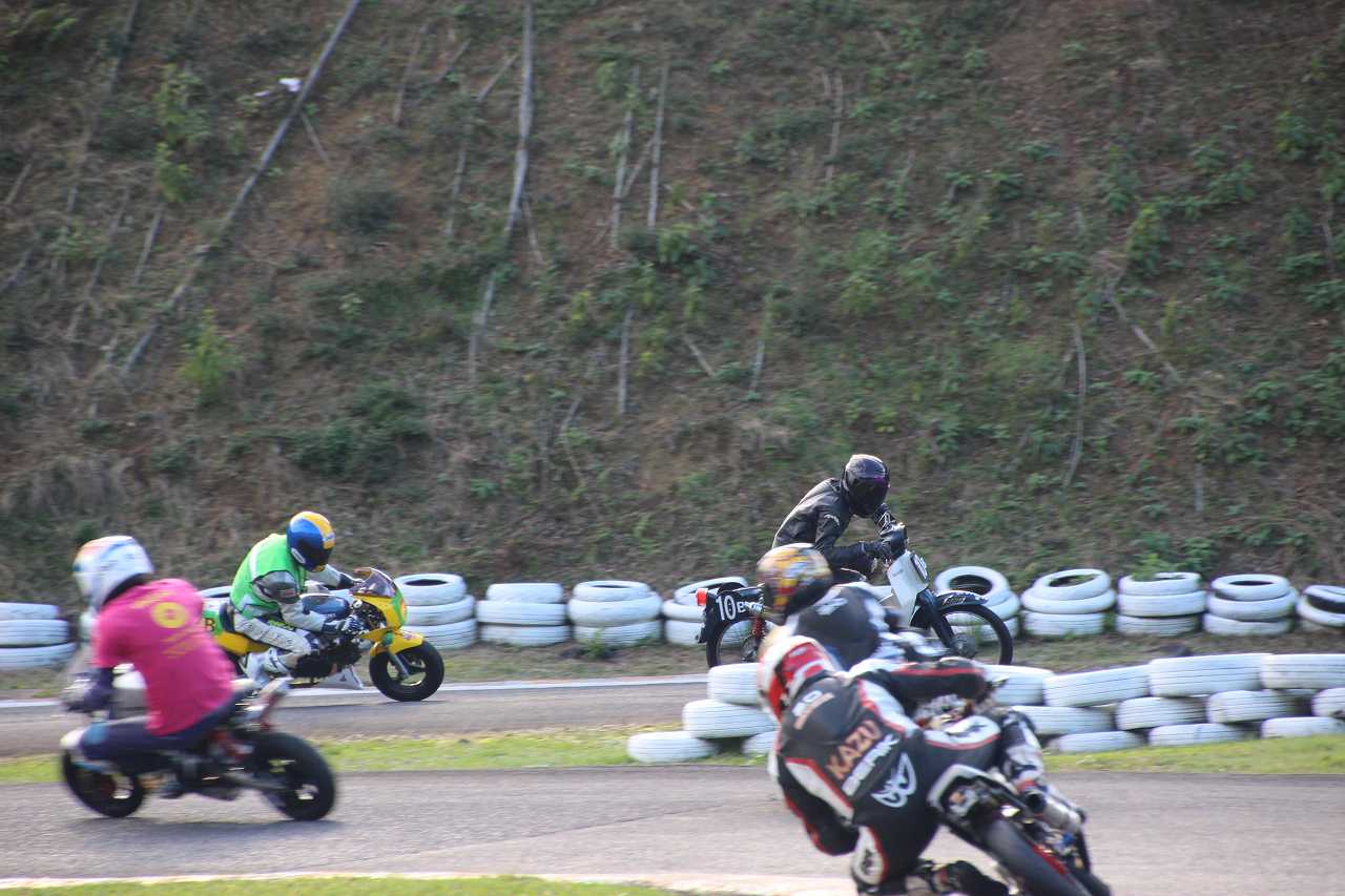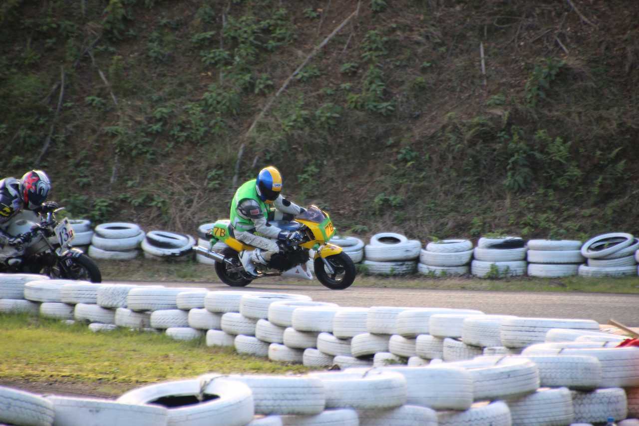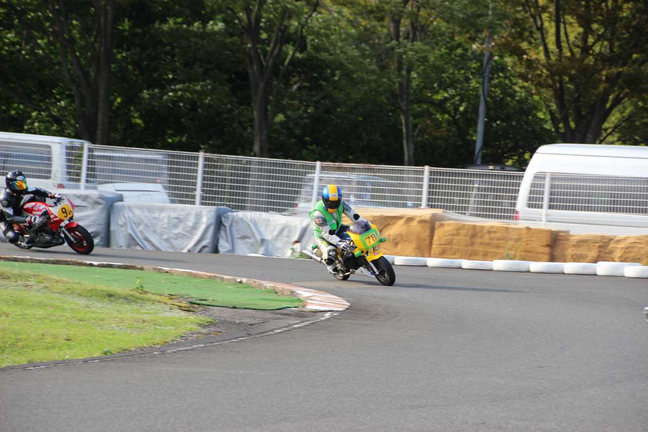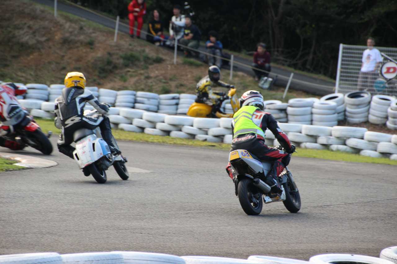 最後の最後で、前のバイクに行き場を塞がれ、クラッシュ!!!!!!!!!!