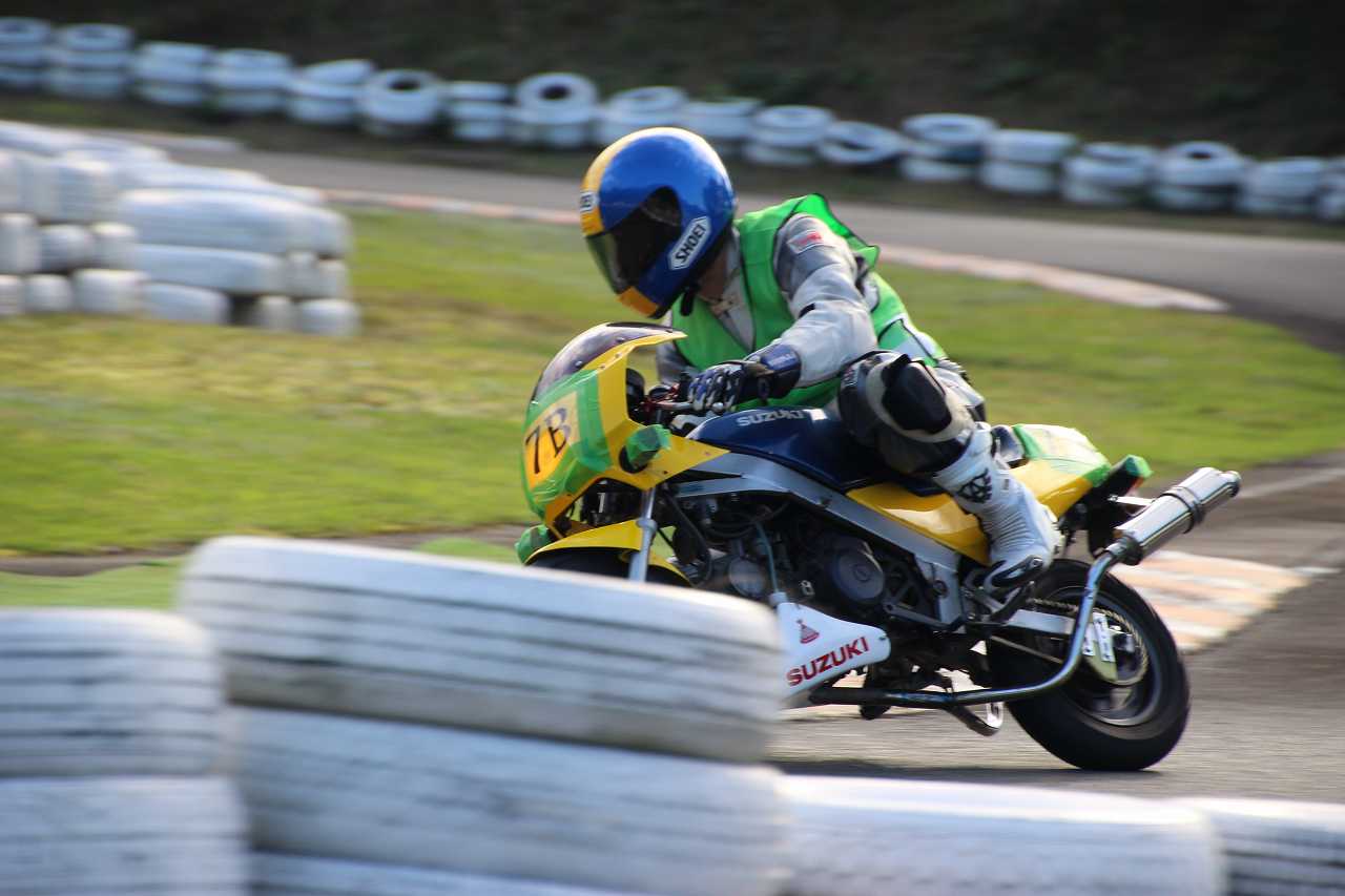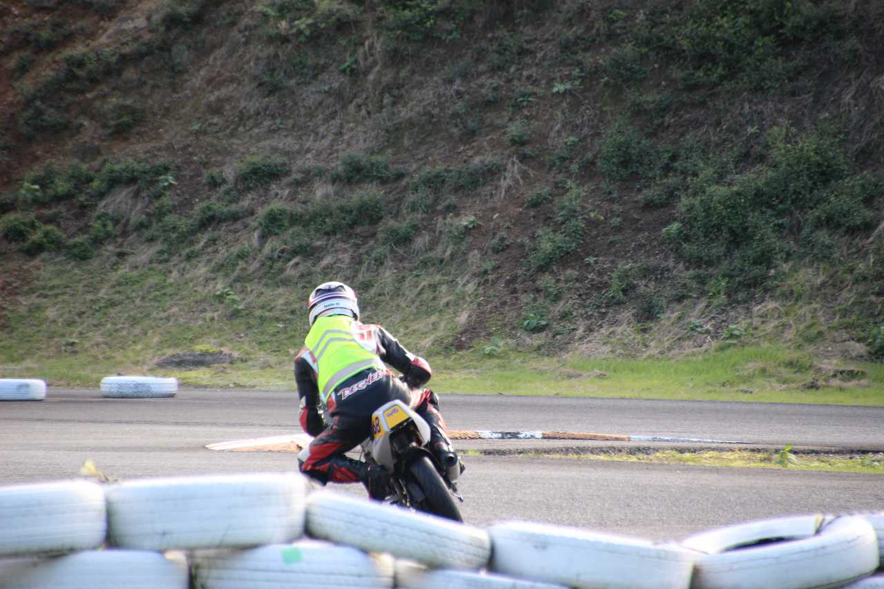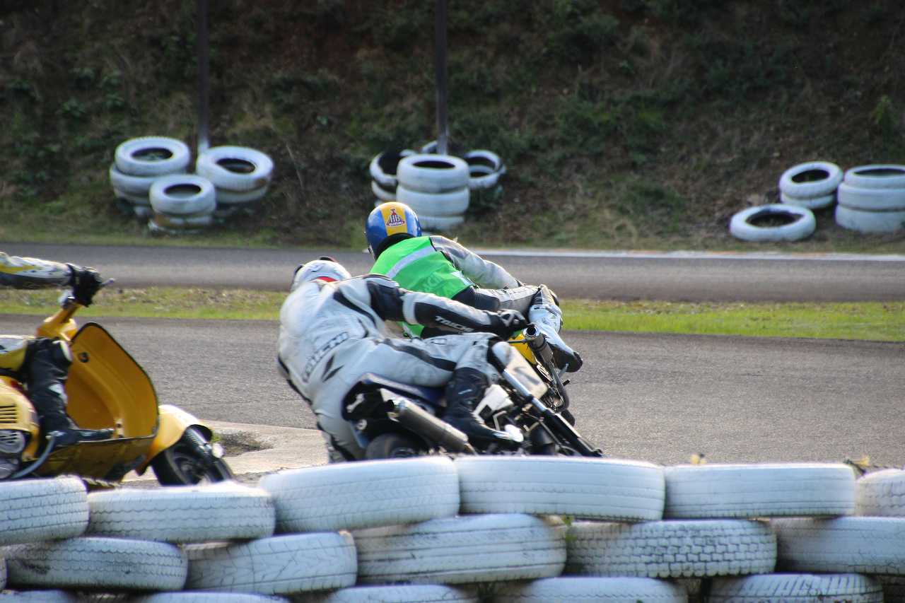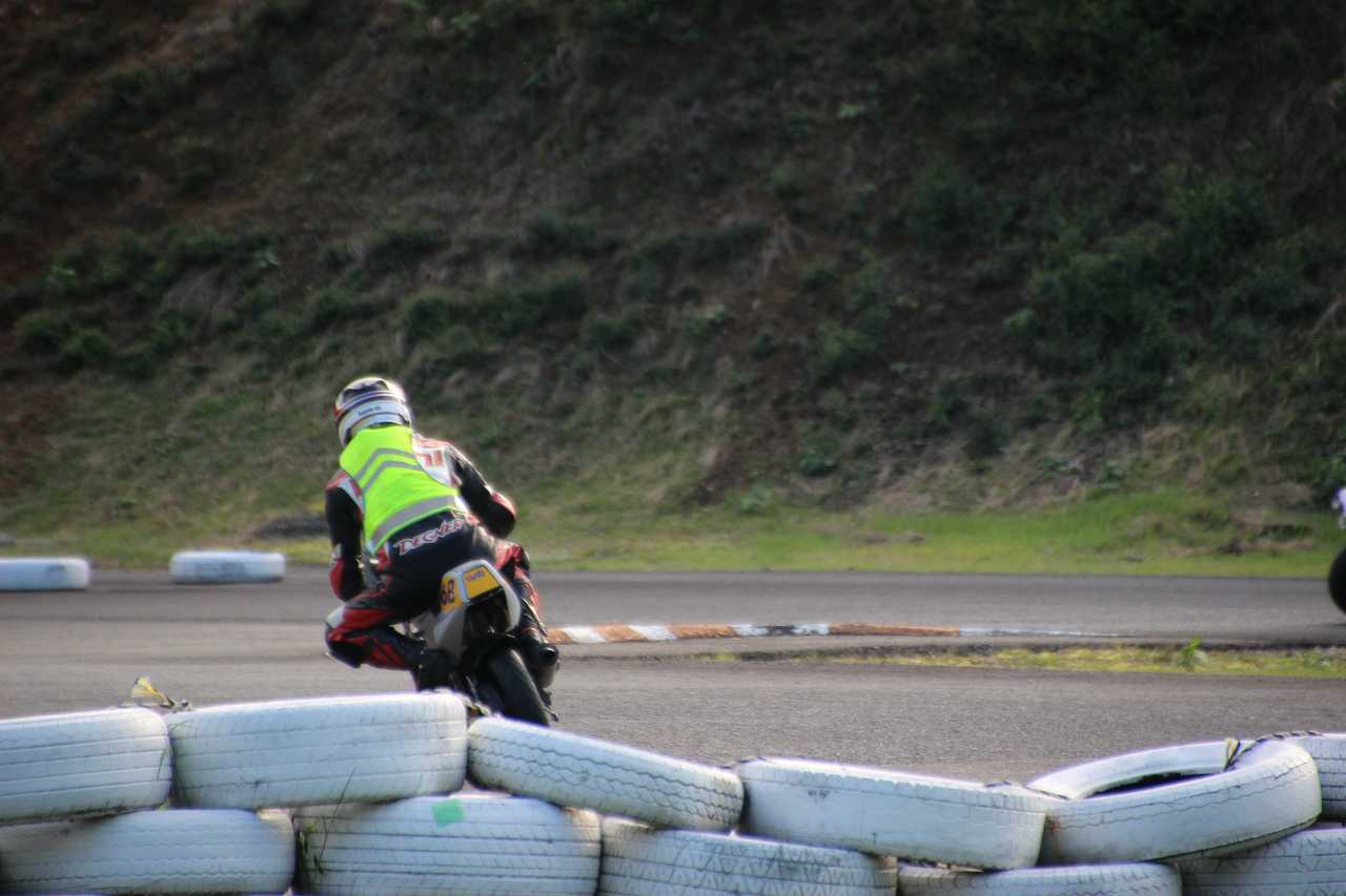 最後の最後で、前のバイクに行き場を塞がれ、クラッシュ!!!!!!!!!!