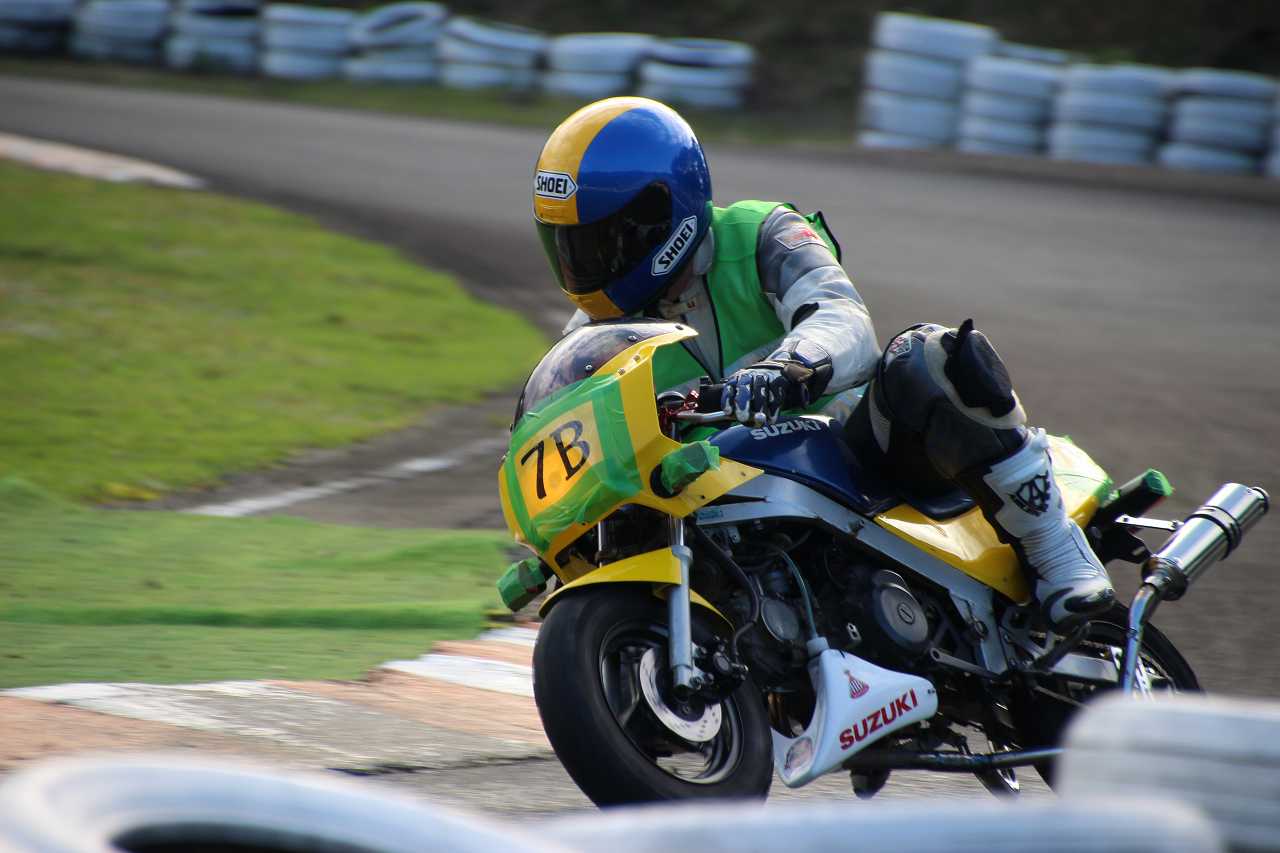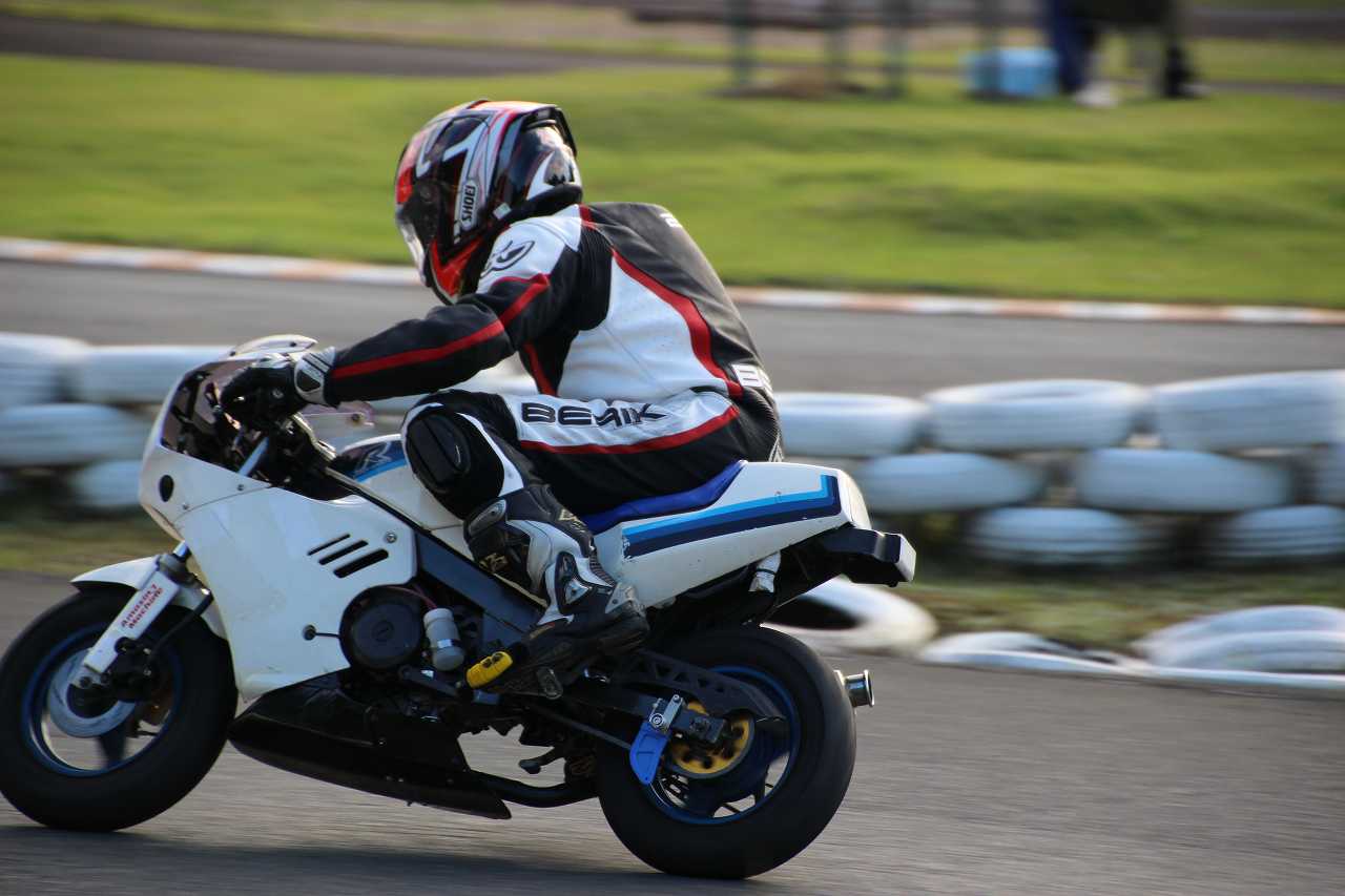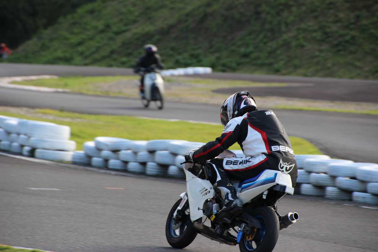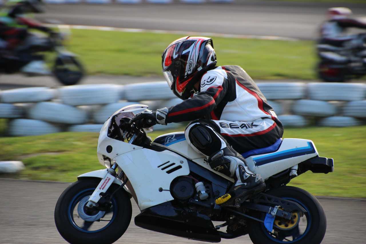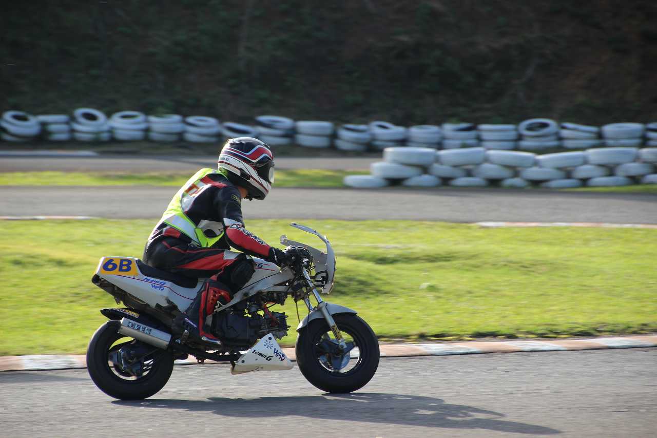 最後の最後で、前のバイクに行き場を塞がれ、クラッシュ!!!!!!!!!!
