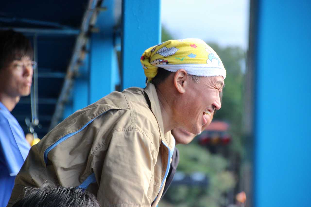 フェンスのところで、待ってた全員が、大声で、ニュートラルにしろ!!!!ギヤが入ってる!!!って叫ぶも、通じない。。。