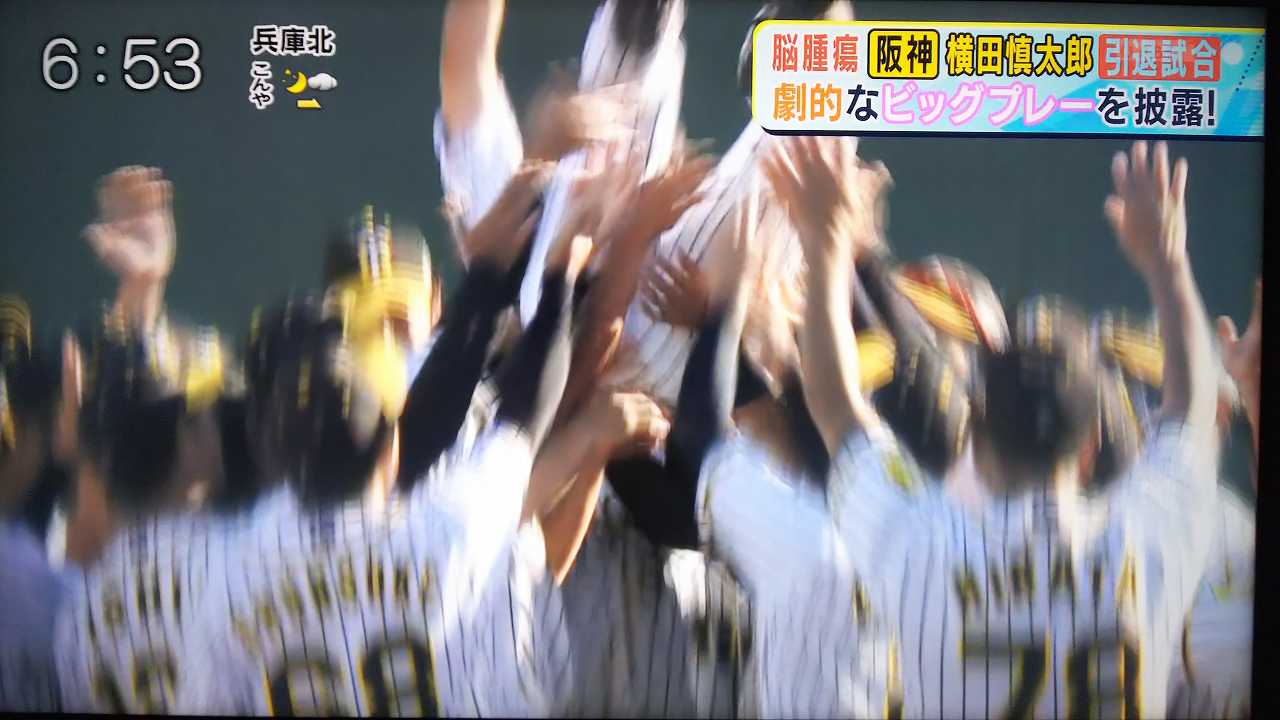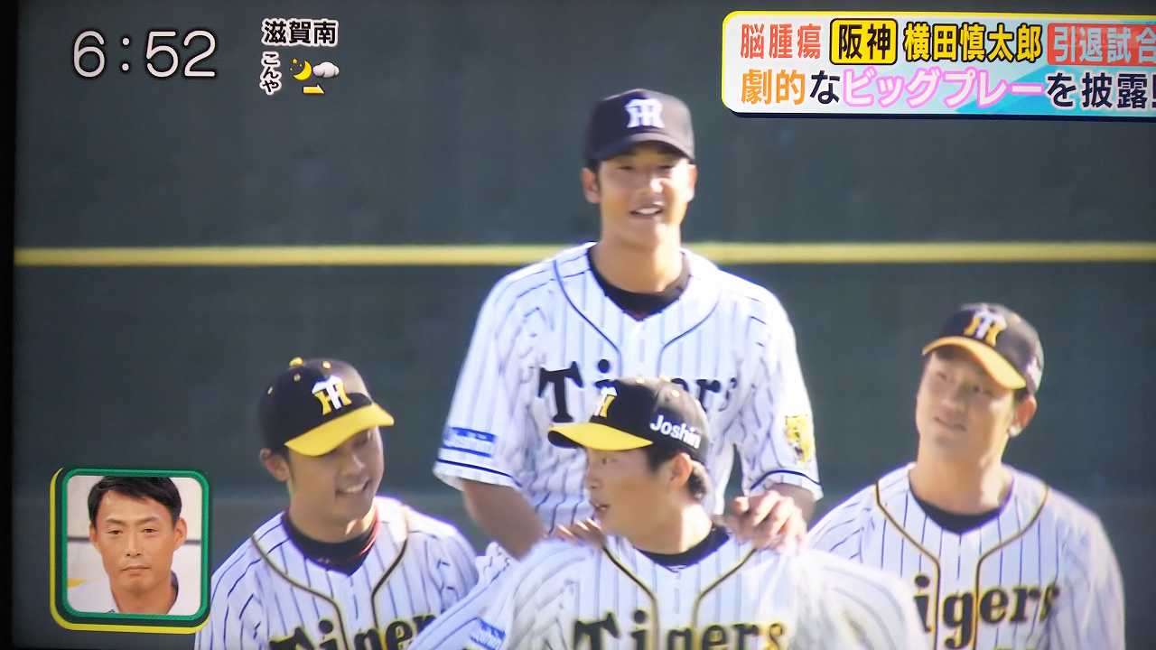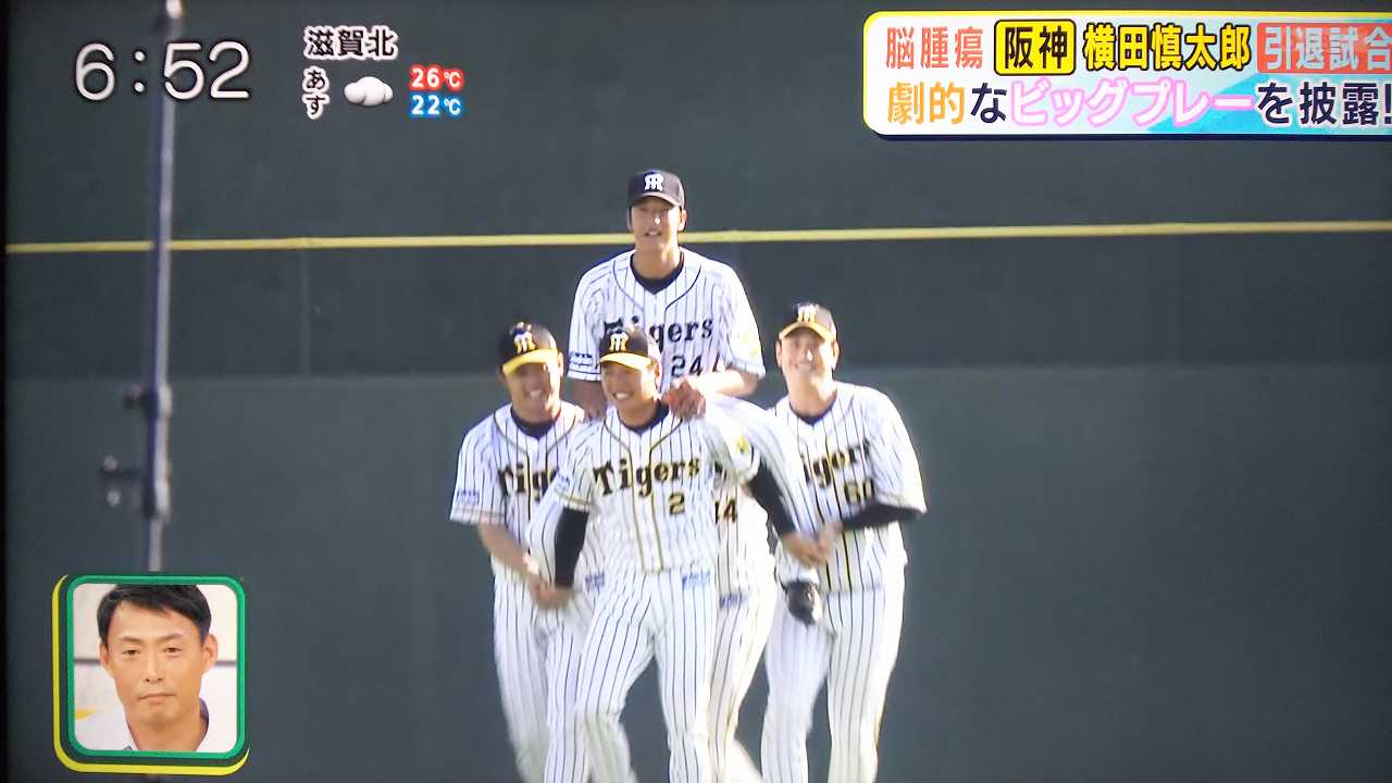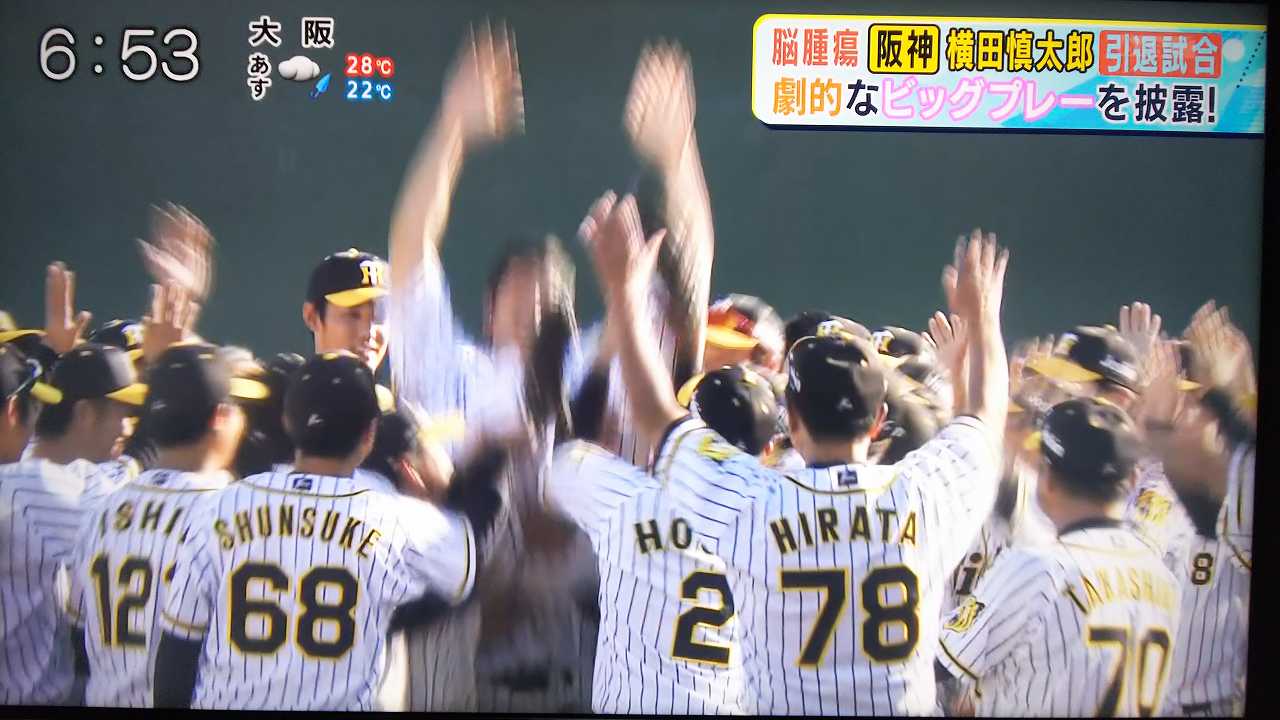 高山、北條、梅野と騎馬を組んで横田を運んだ阪神・中谷