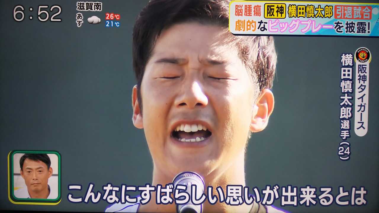 脳腫瘍からの復帰を目指したが、今季限りで現役を引退する阪神・横田慎太郎外野手(24)が26日、ウエスタン・ソフトバンク戦(鳴尾浜)で引退試合に臨んだ。打席に立つ機会はなかったが、本塁生還を阻止する奇跡のバックホームで勝利に貢献。病気と戦い、実戦復帰をあきらめなかった若虎に、野球の神様が最後の最後にほほ笑んだ。